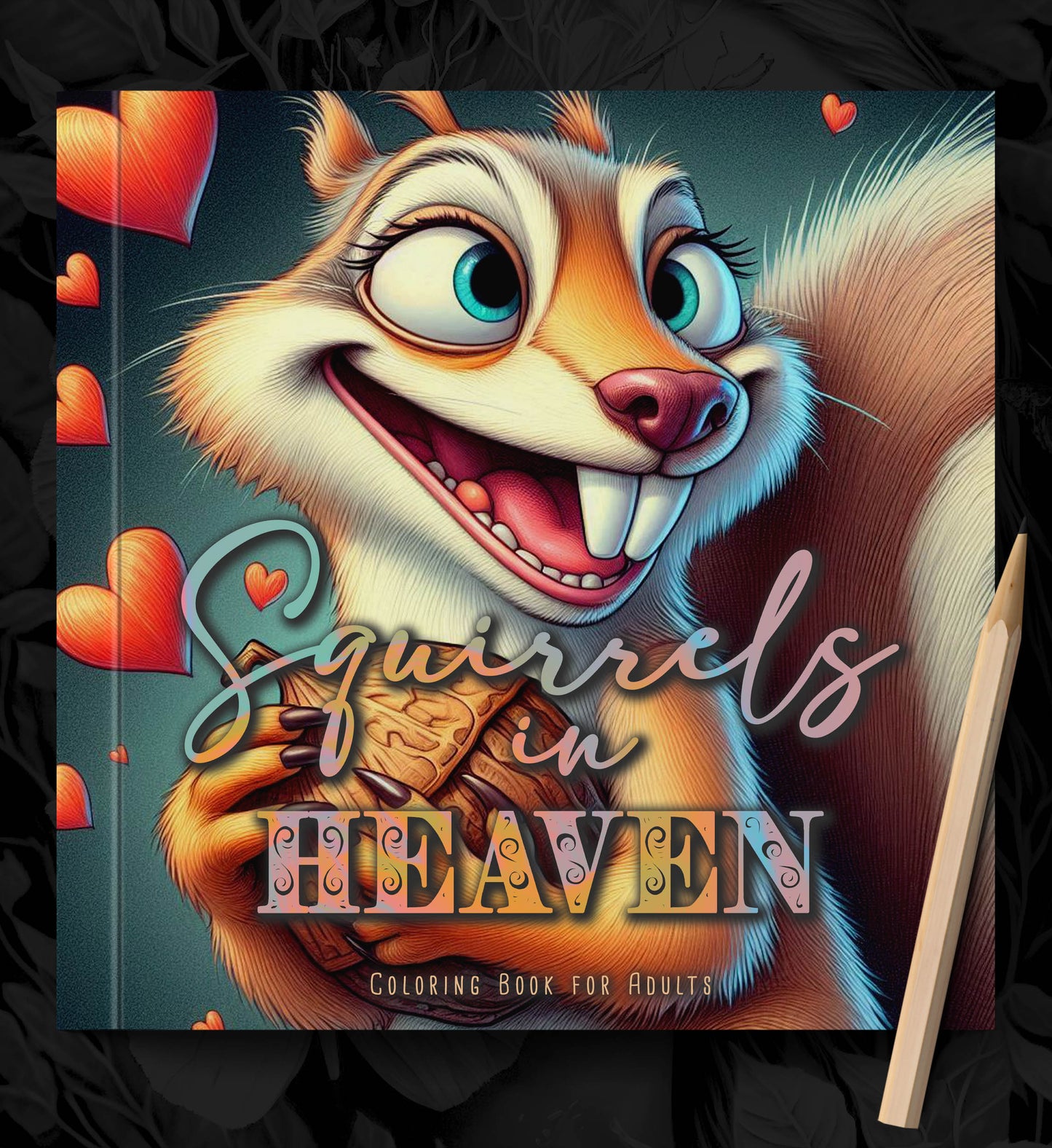 A super fun coloring book with squirrels in autumn heaven, finding nuts, worshiping nuts, burying nuts, squirrels in nut heaven.