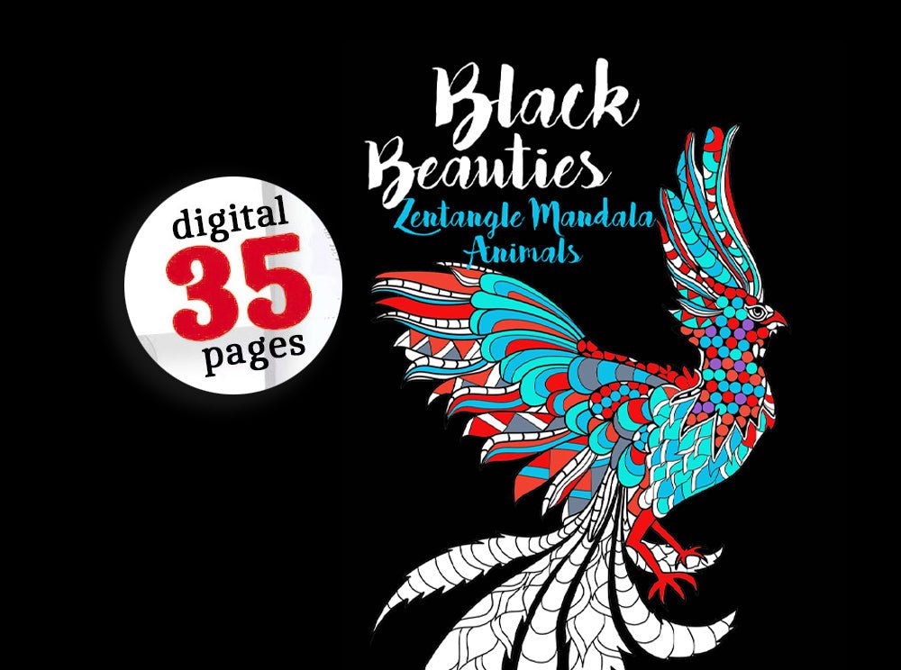 Animal Zentangle Coloring Book | Zentangle Book | Beautiful Animals with black backgrounds