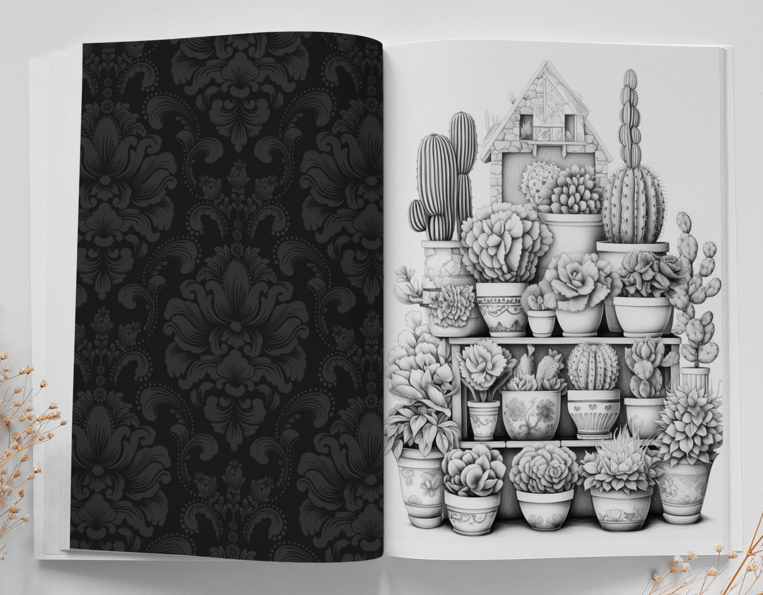 Cactus in a Pot Coloring Book Grayscale