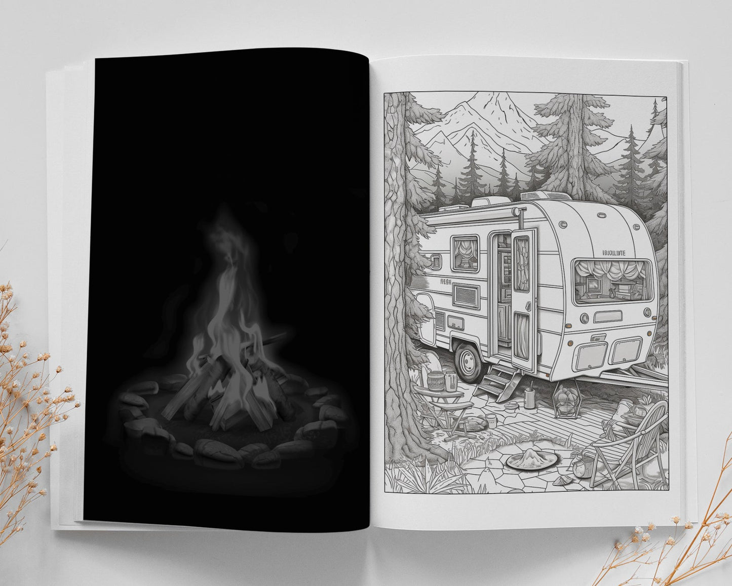 Camping Adventures Coloring Book Grayscale (Printbook)