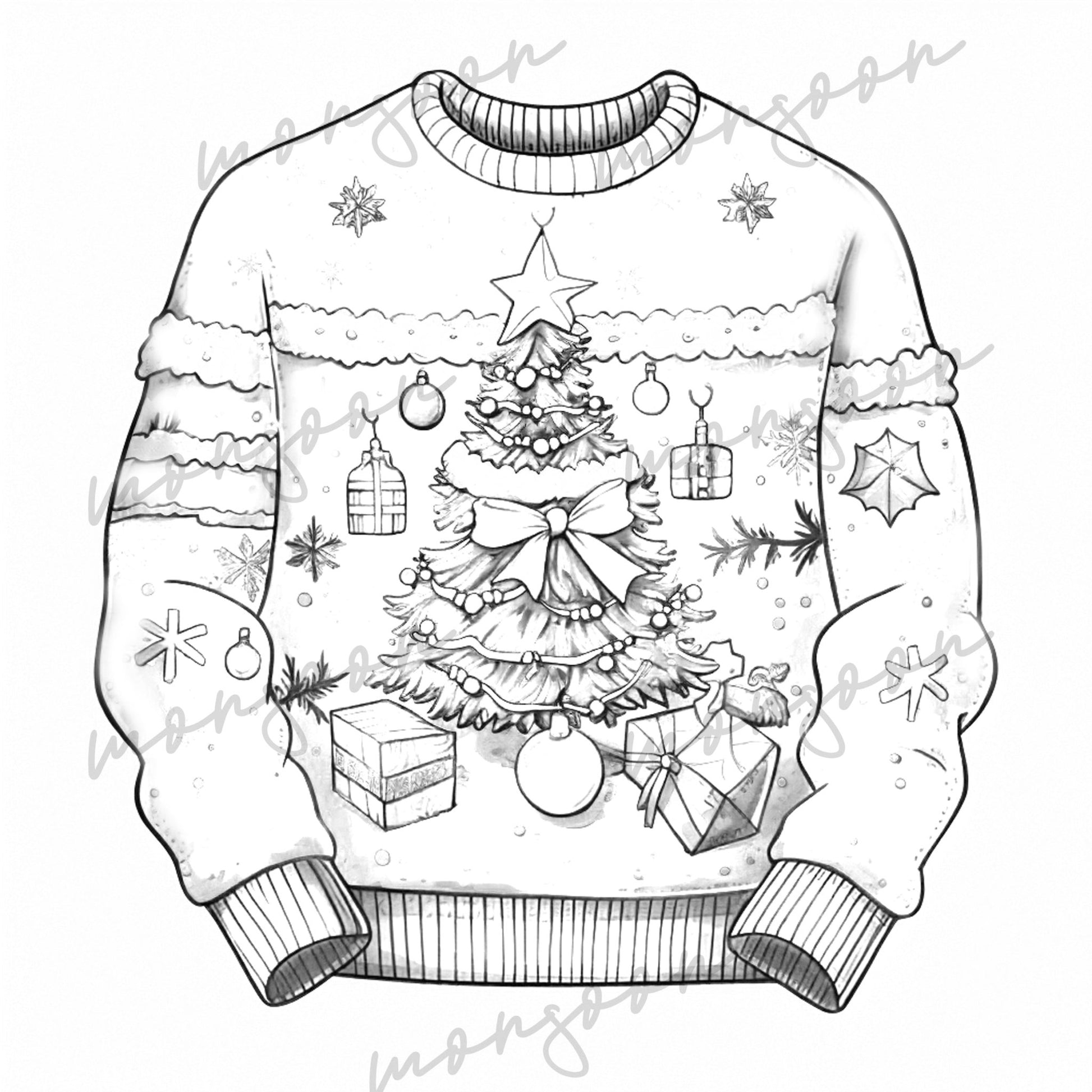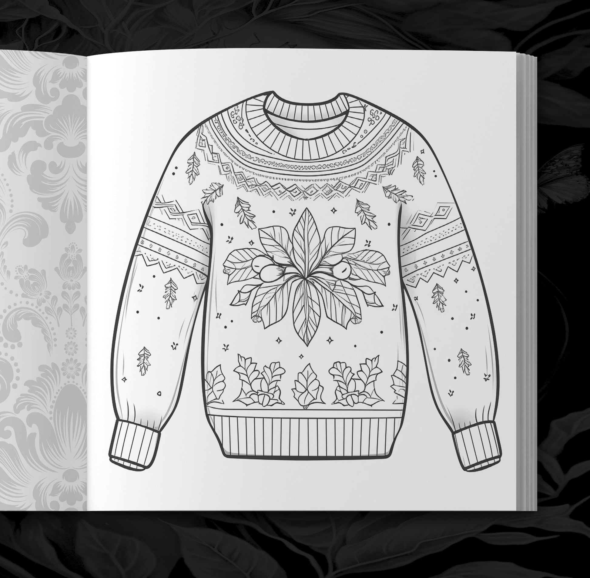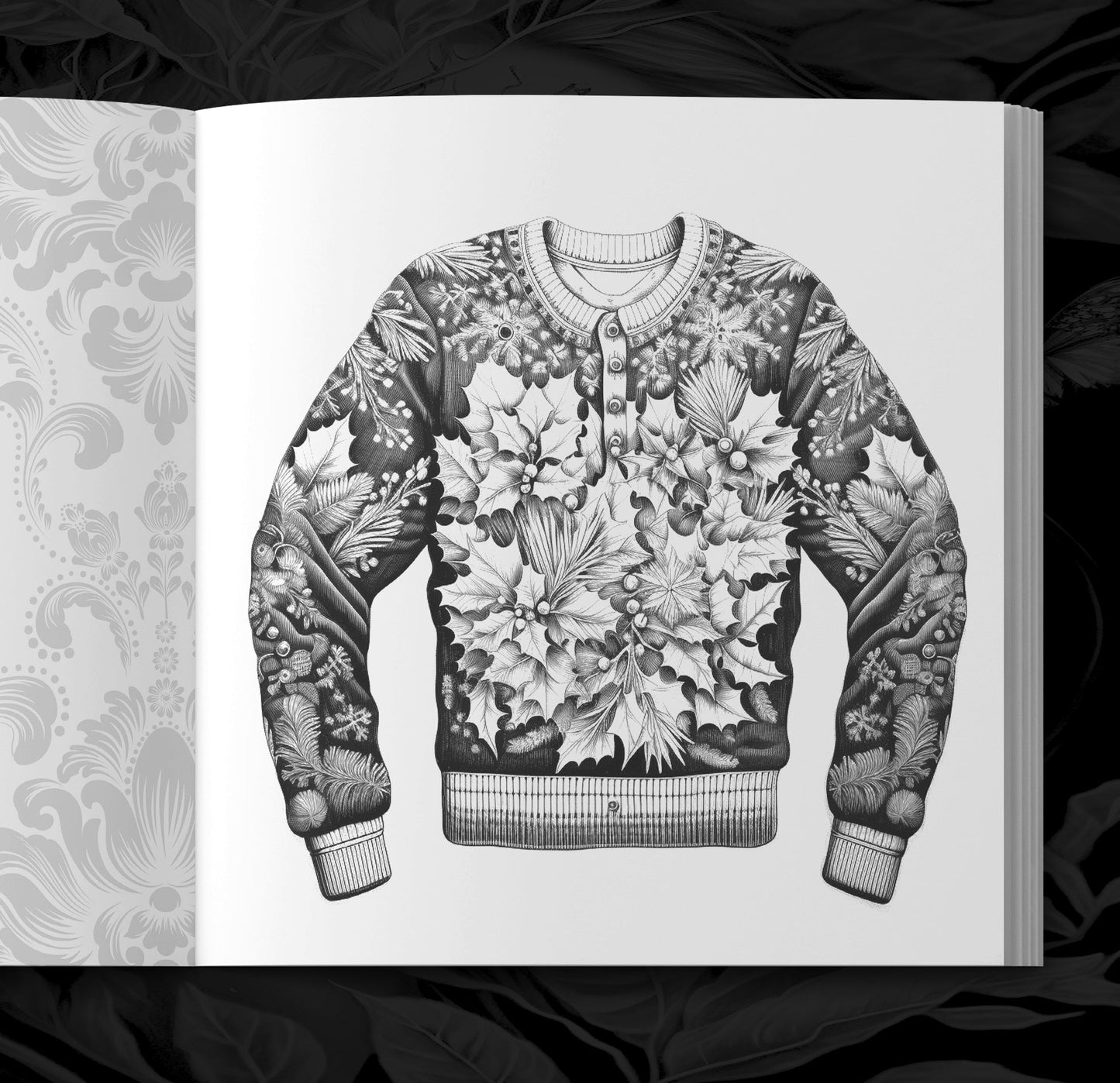 A funny grayscale christmas coloring book with the ugliest Sweaters to shine at Christmas