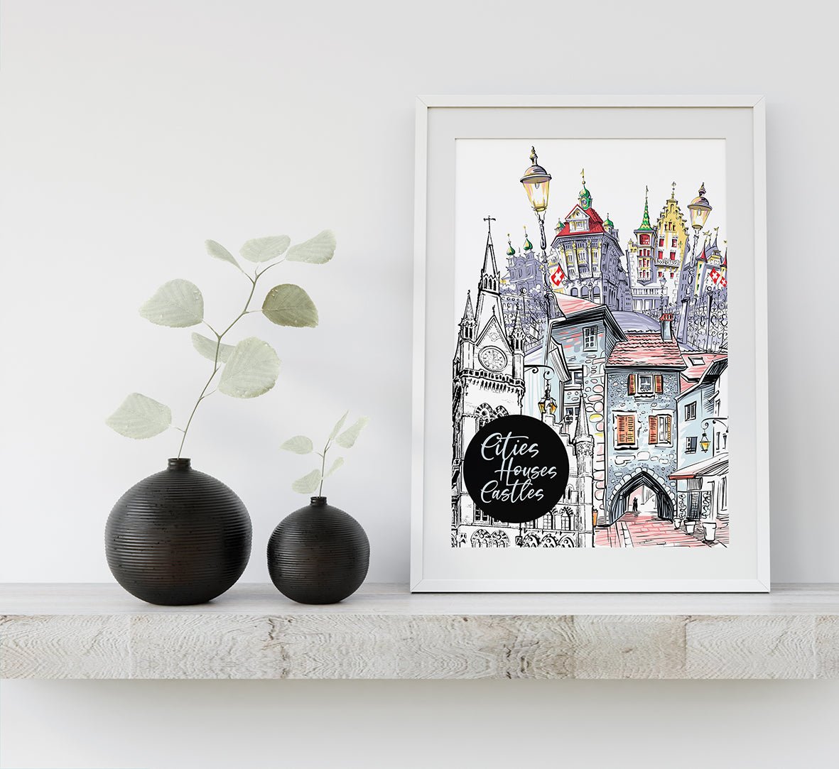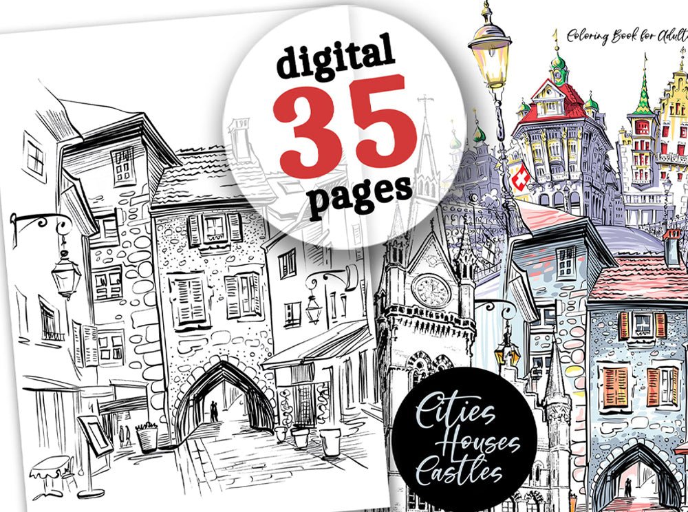 Cities Houses Castles Coloring Book (Digital)