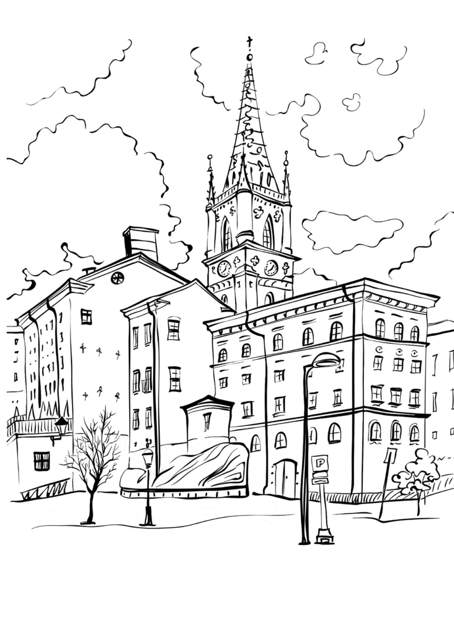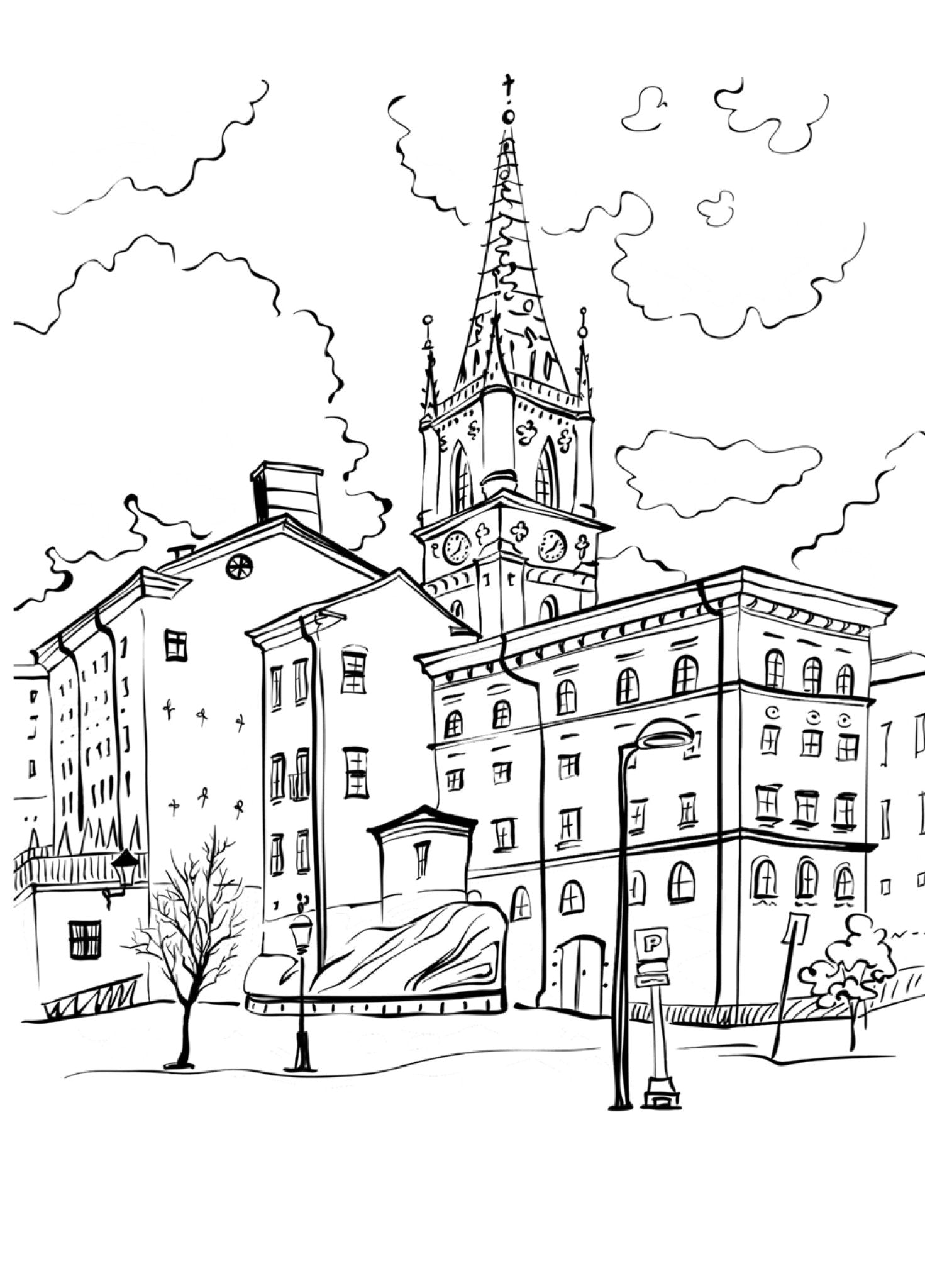 City Coloring Book | Coloring Book Cities | Castles Coloring 8,27 x 11,69" | 35 P
