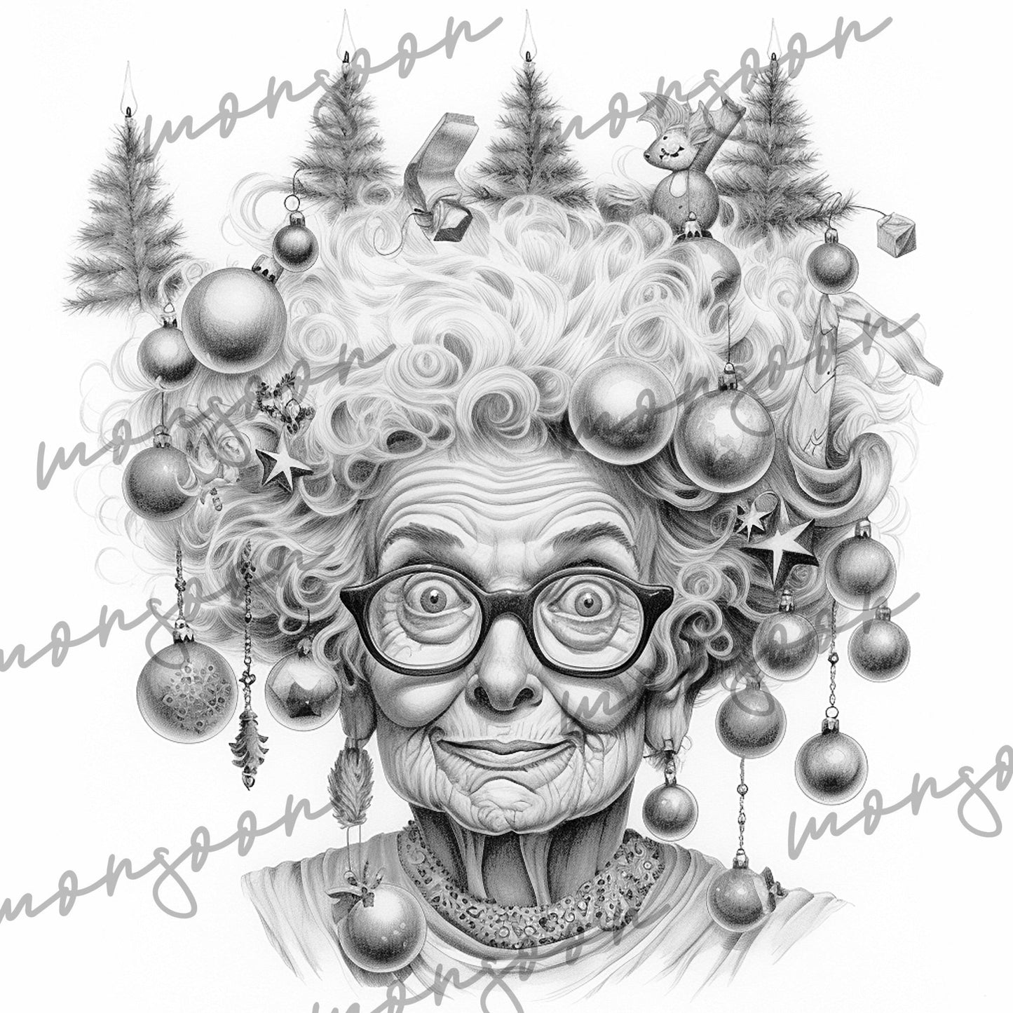 A perfect gift for all grandma lovers, portrait coloring fans and christmas lovers