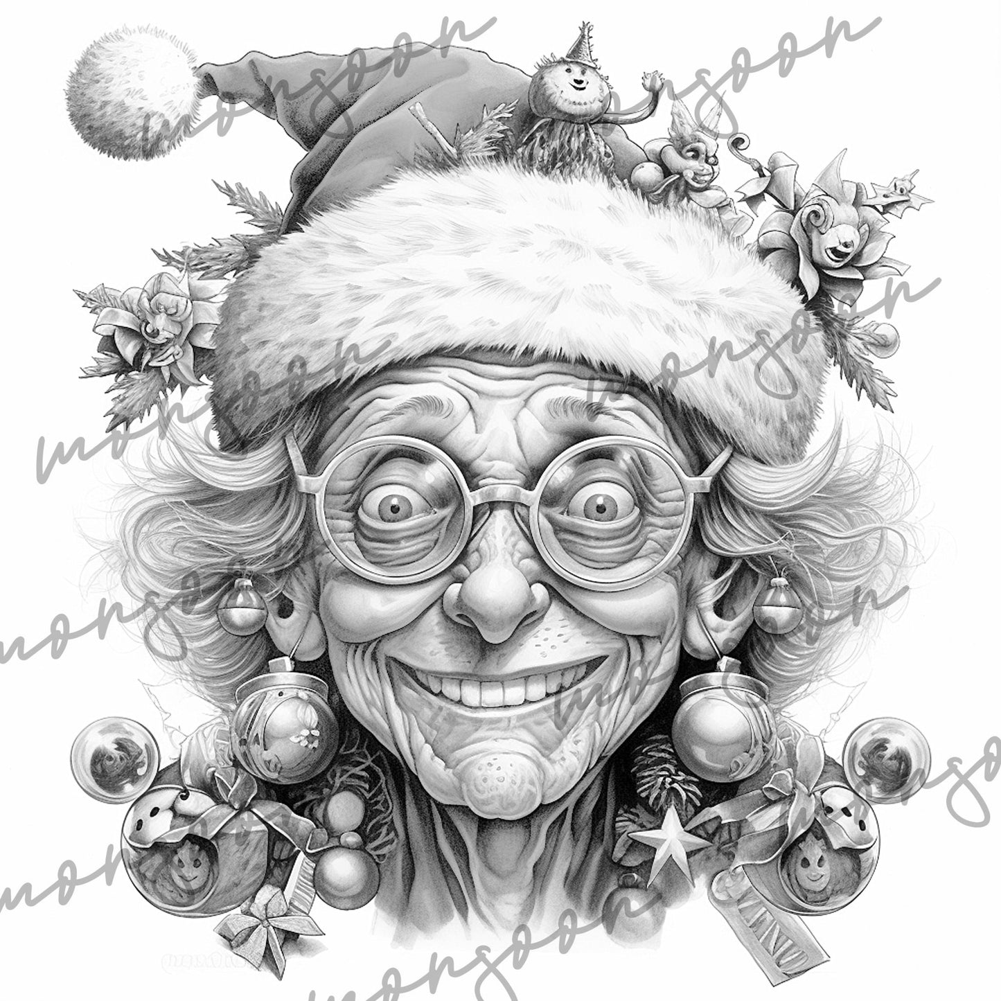 ★Crazy Grandmas on Christmas Grayscale Coloring Book printable★