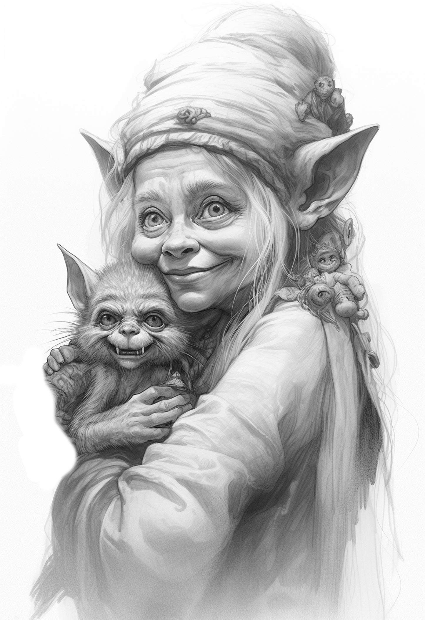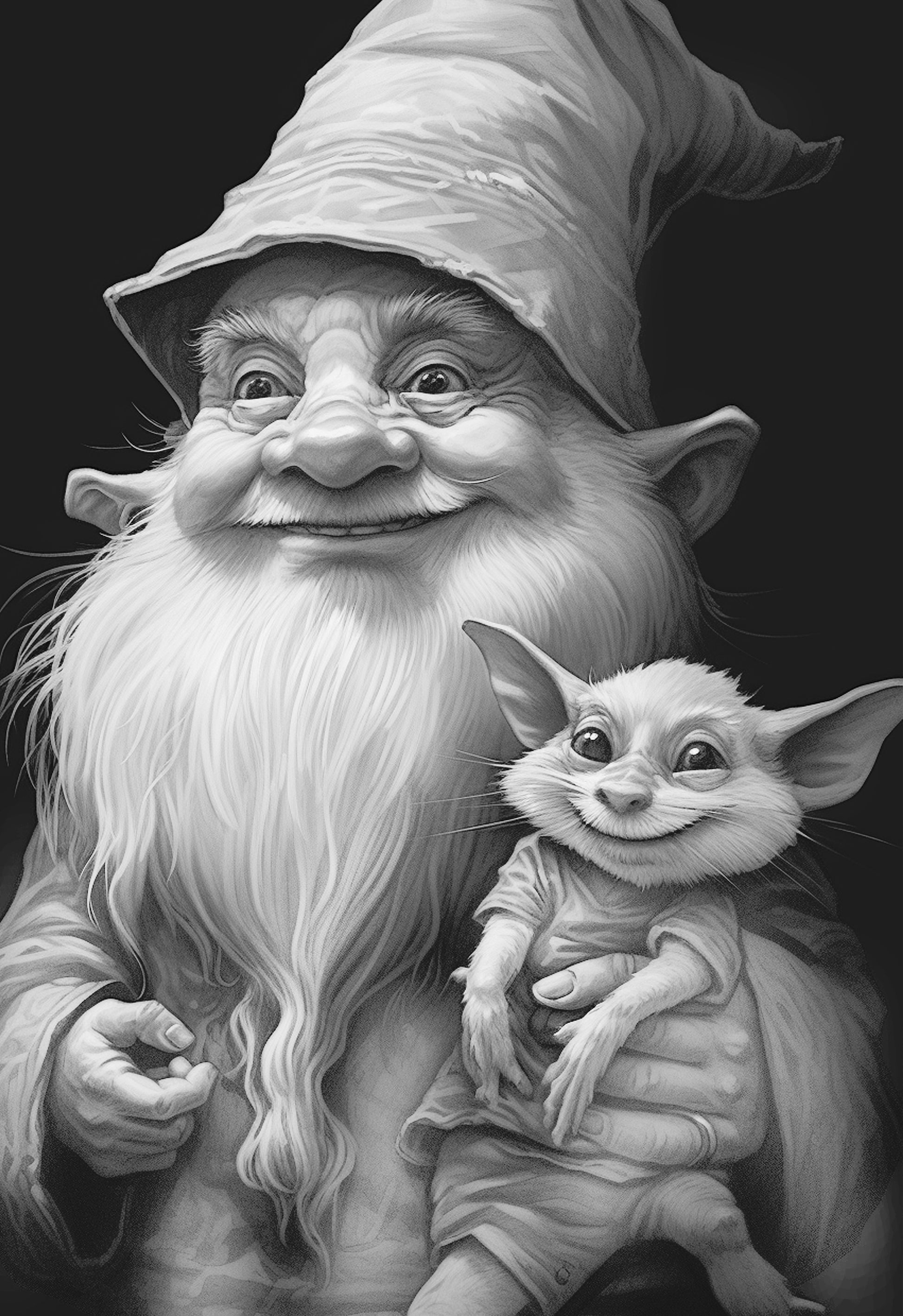 A lovely coloring book with Gnomes and their Cats and Fantasy Creatures