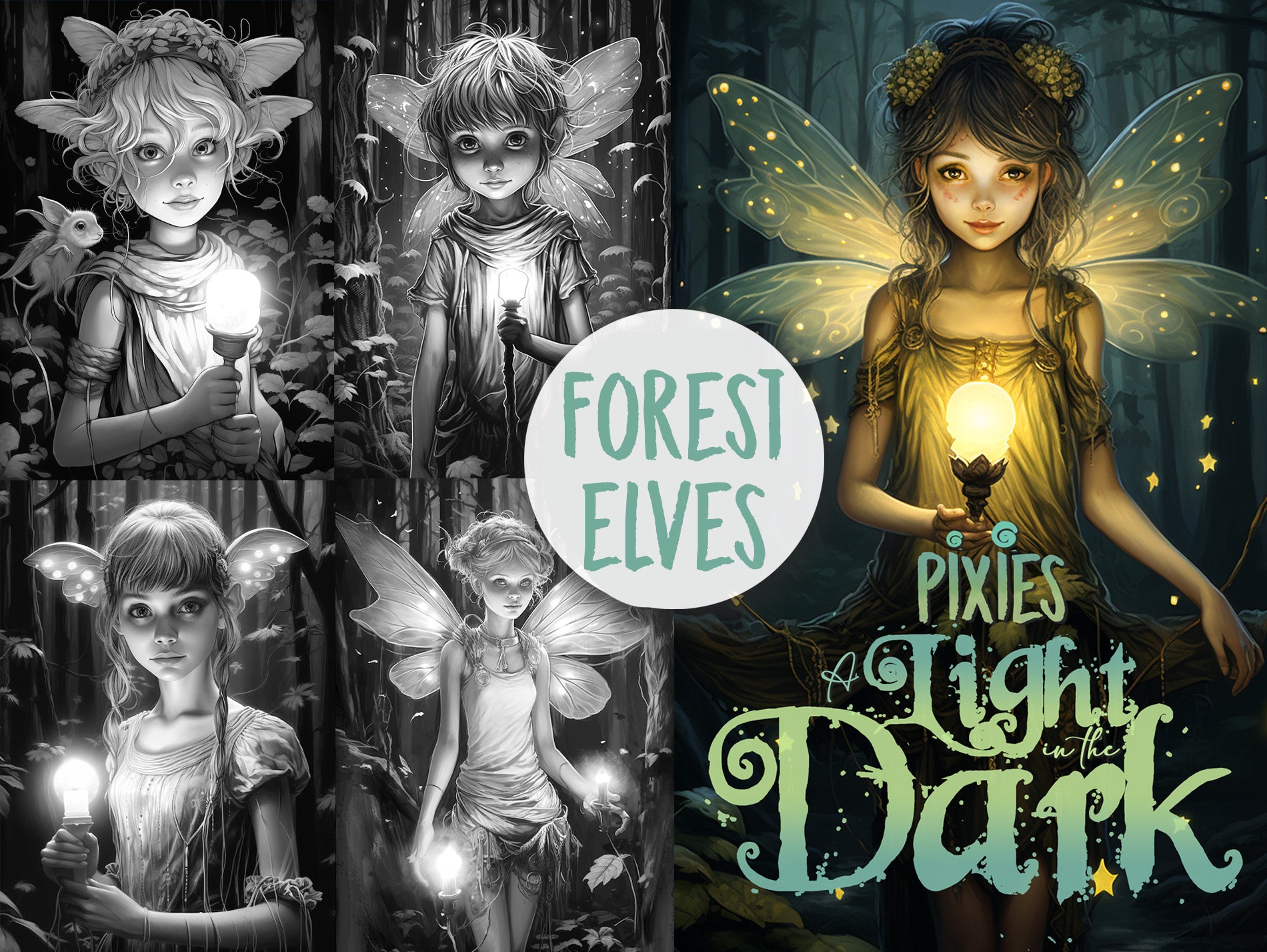 ★Pixies - A light in the Dark Grayscale Coloring Book★