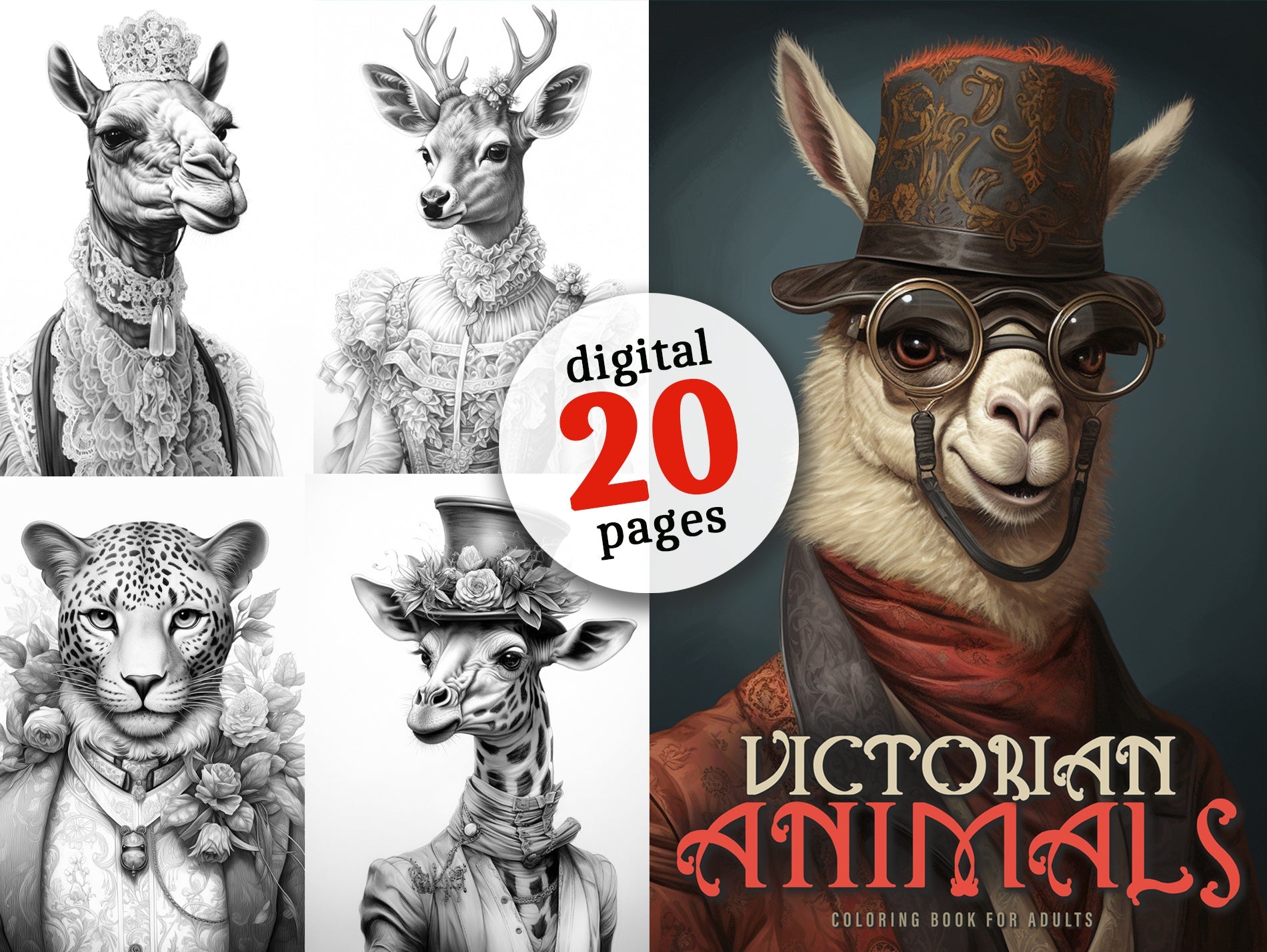 Victorian Animals Coloring Book Grayscale (Digital)