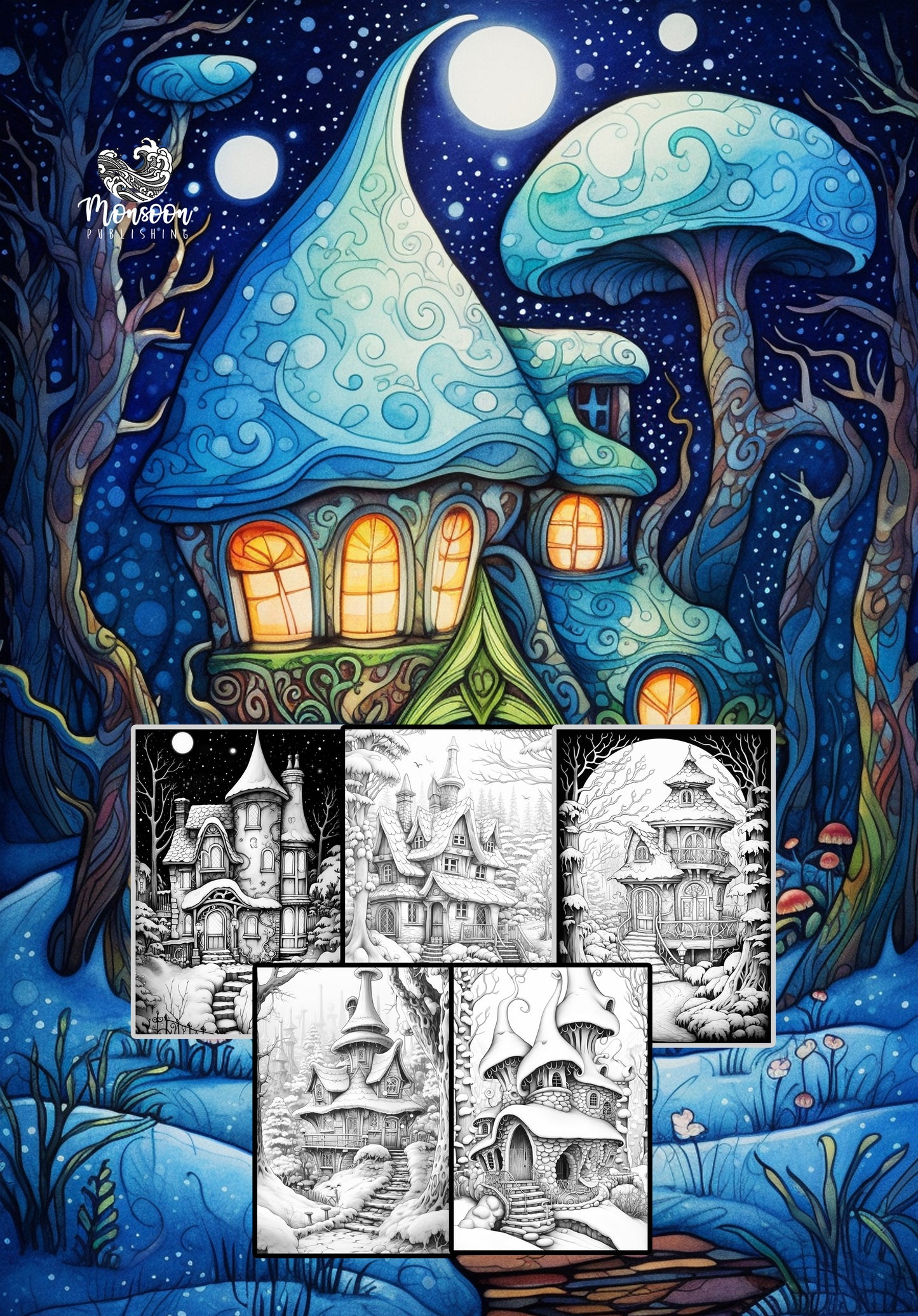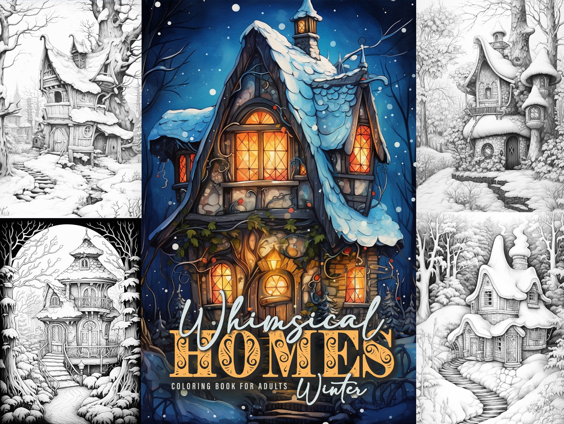 The Gnome coloring book is a great gift for all Fairy and Fantasy Fans. ★Whimsical Homes in Winter coloring book for adults★