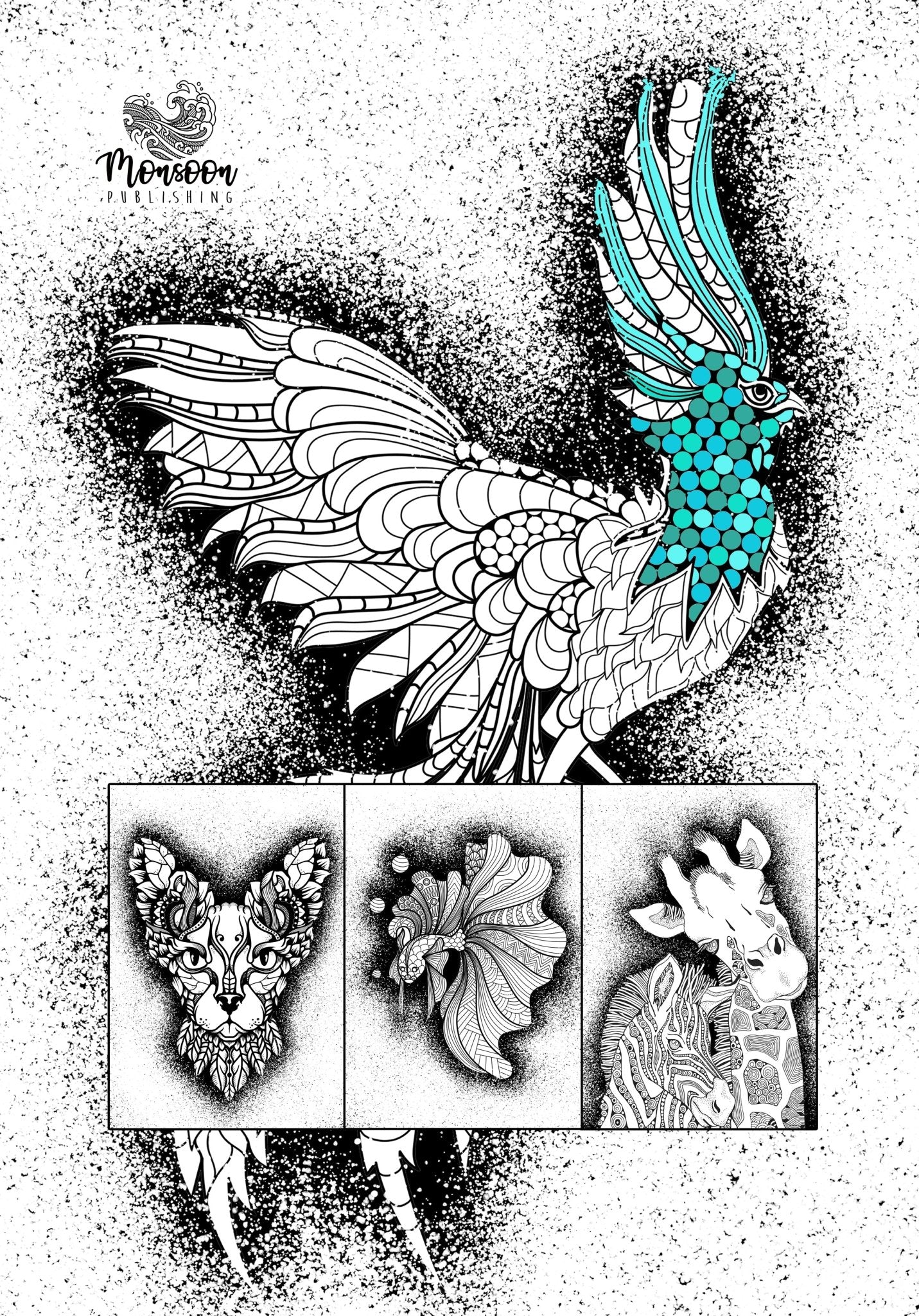 Enjoy this large Coloring Book with amazing animals in a mandala ZEN style - stress relieving, balancing, relaxing and recovery art book for animal lovers.