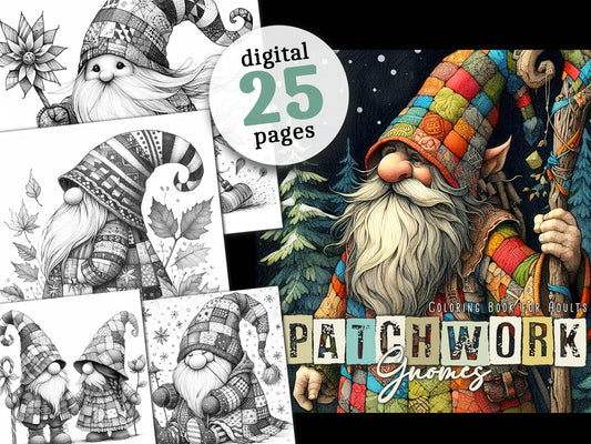 Patchwork Gnomes Coloring Book (Digital)