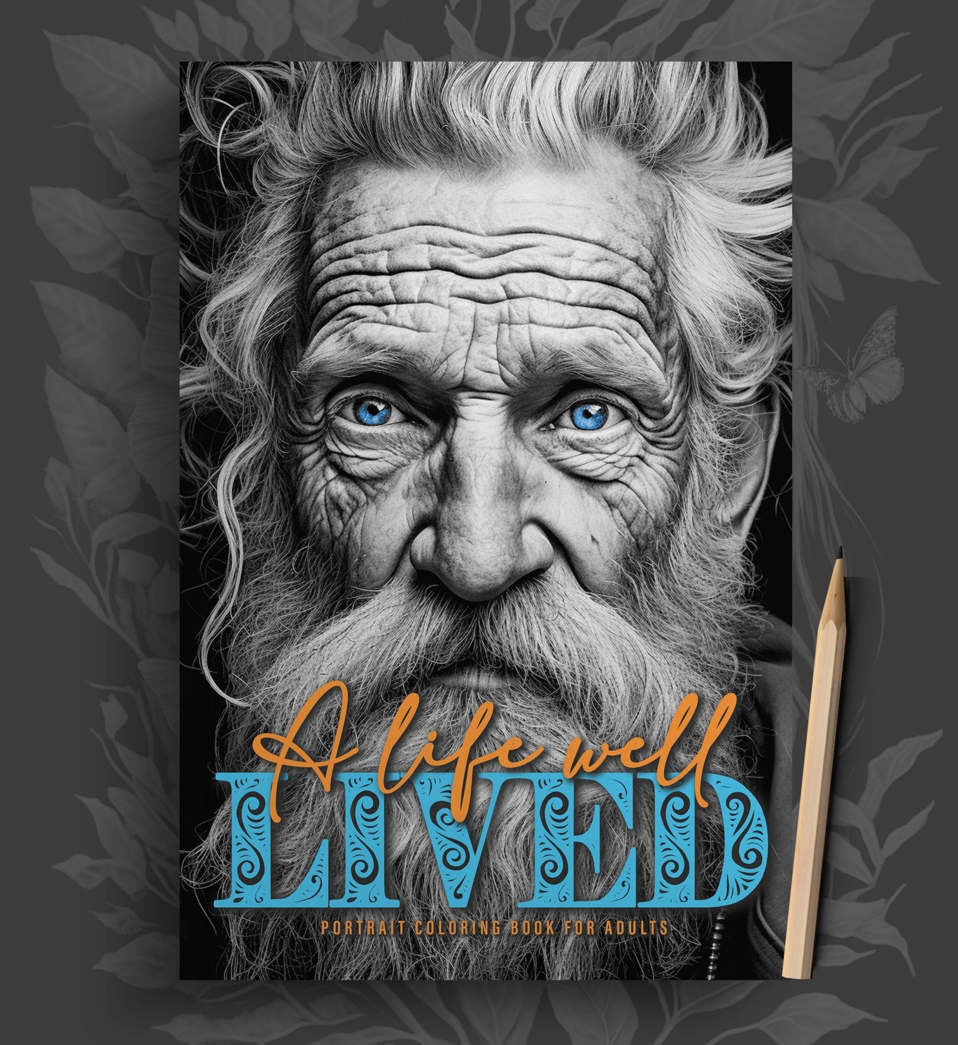 A coloring book with beautiful wrinkled old faces of men and women from different cultures