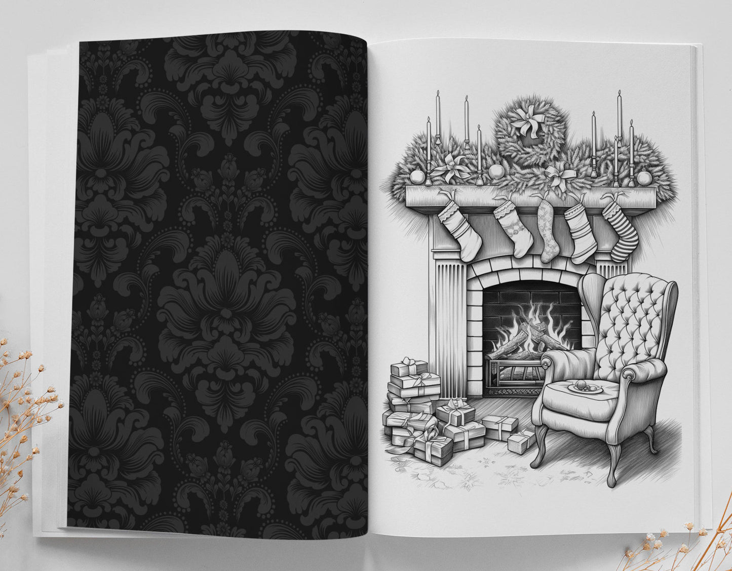 A special coloring book for christmas and fireplaces fans