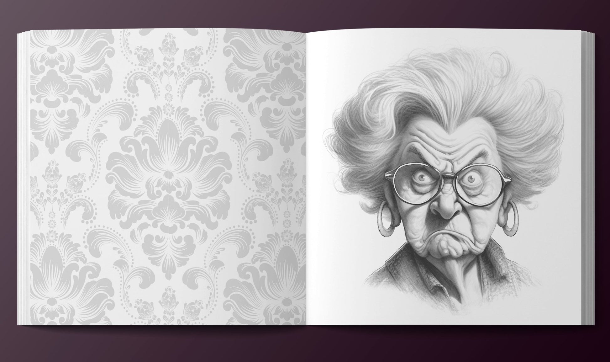 The Grandma coloring book is a great gift for portrait coloring lovers, for grandma fans.