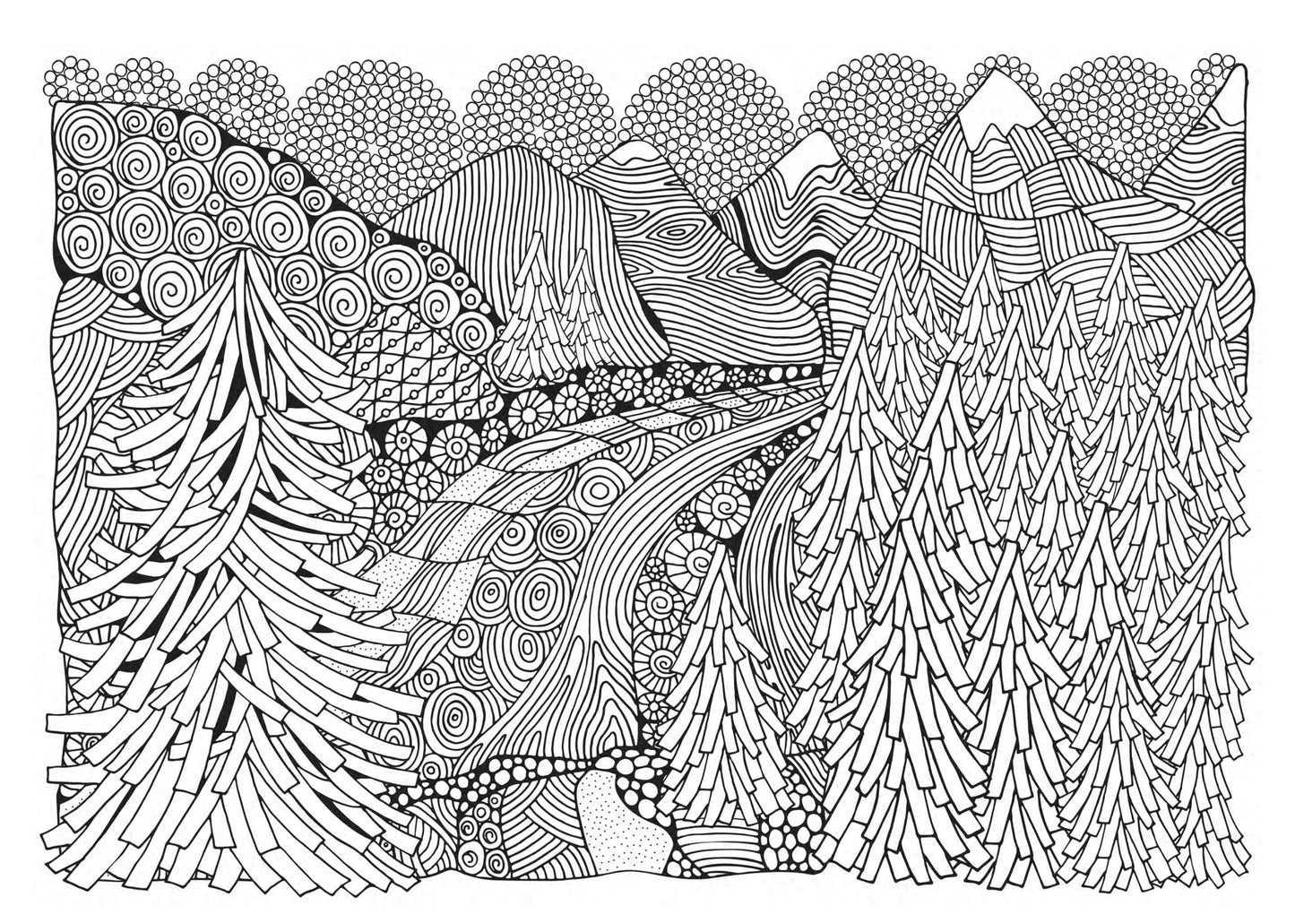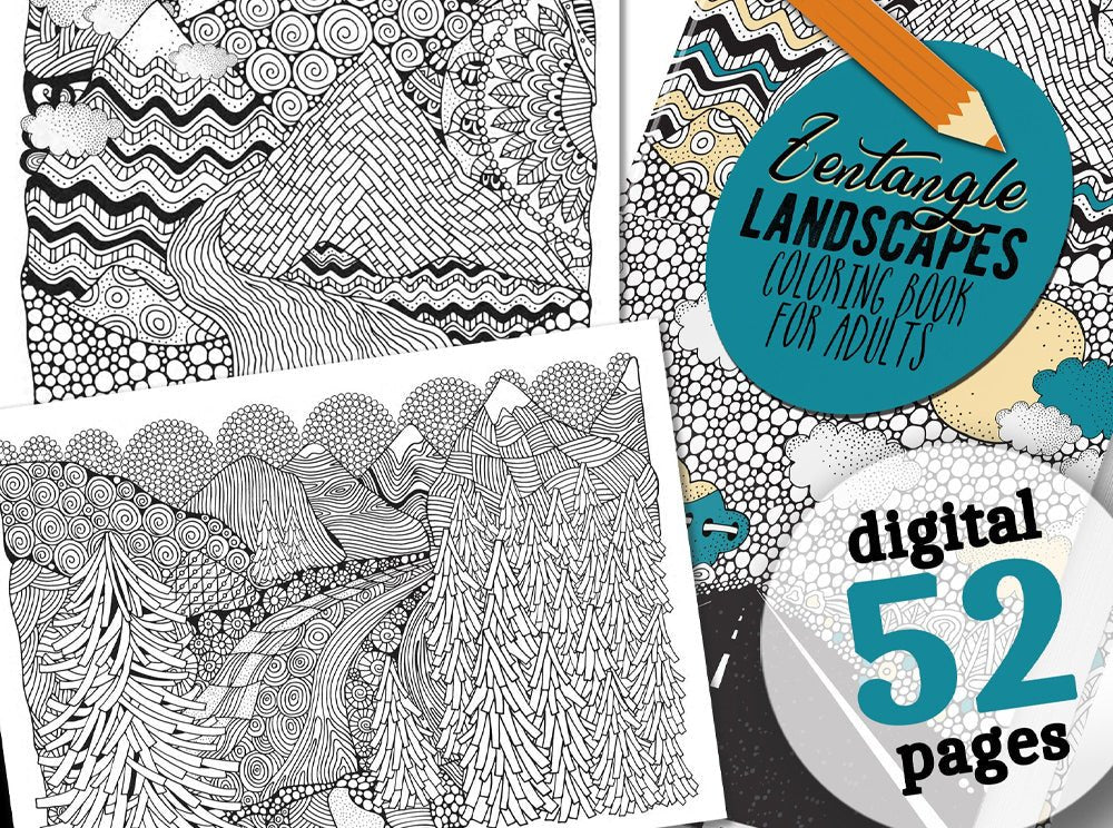 Beautiful zentangle Landscape coloring book to dream and relax - DOWNLOAD