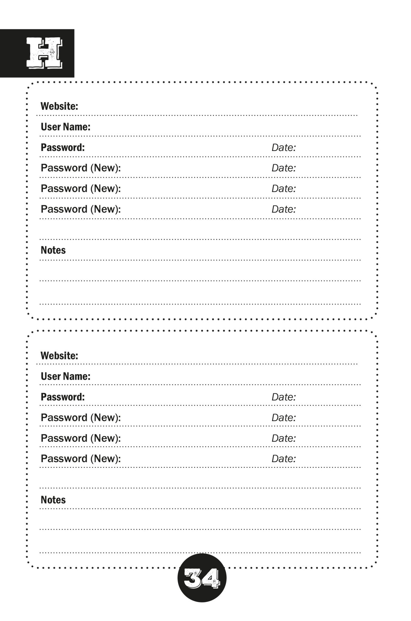 This password pages will help you out, if you know who you are - but forget your passwords! Store the passwords of your favourite websites, apps, devices, and credit cards. Easy to find with tabs and the A-Z system.