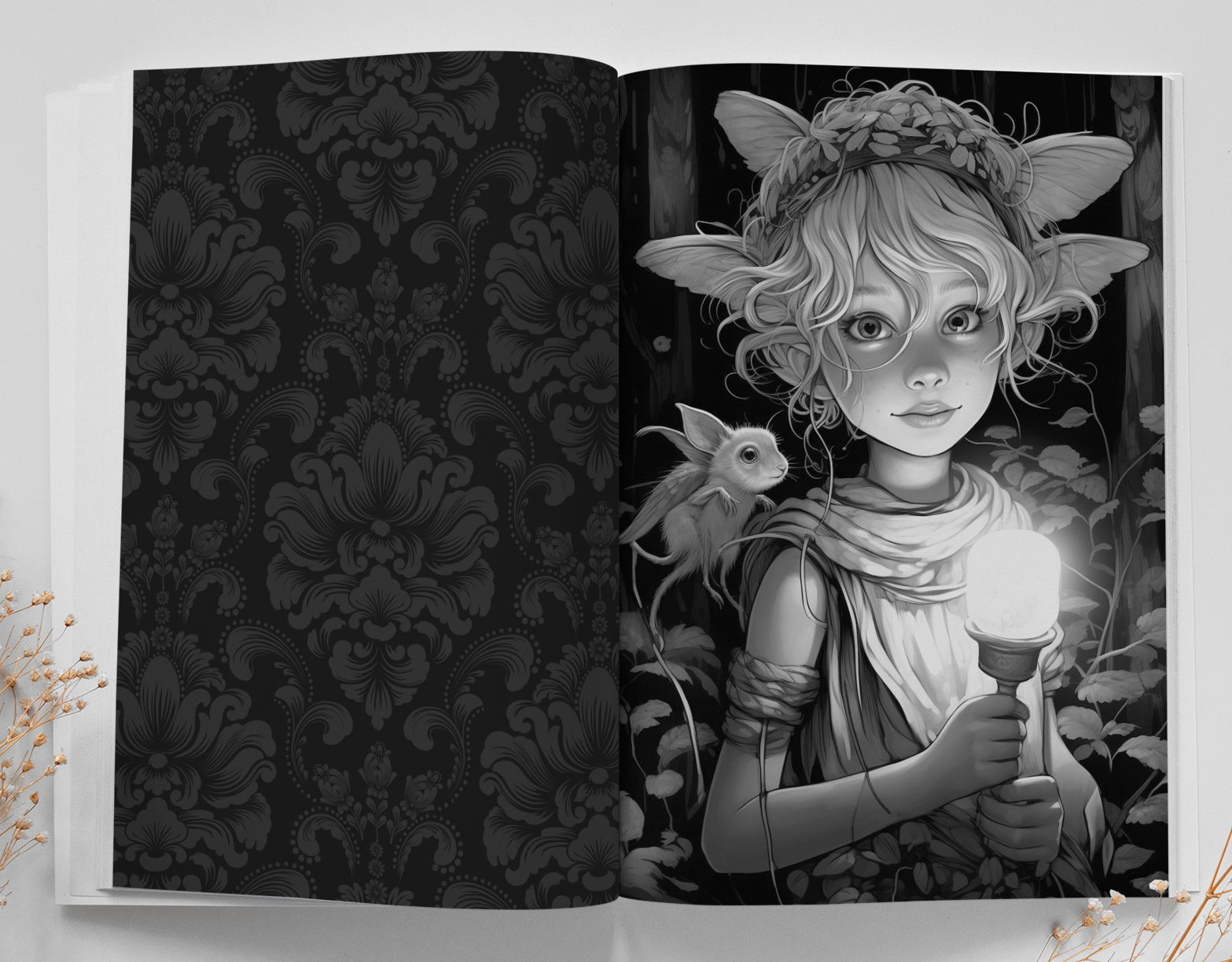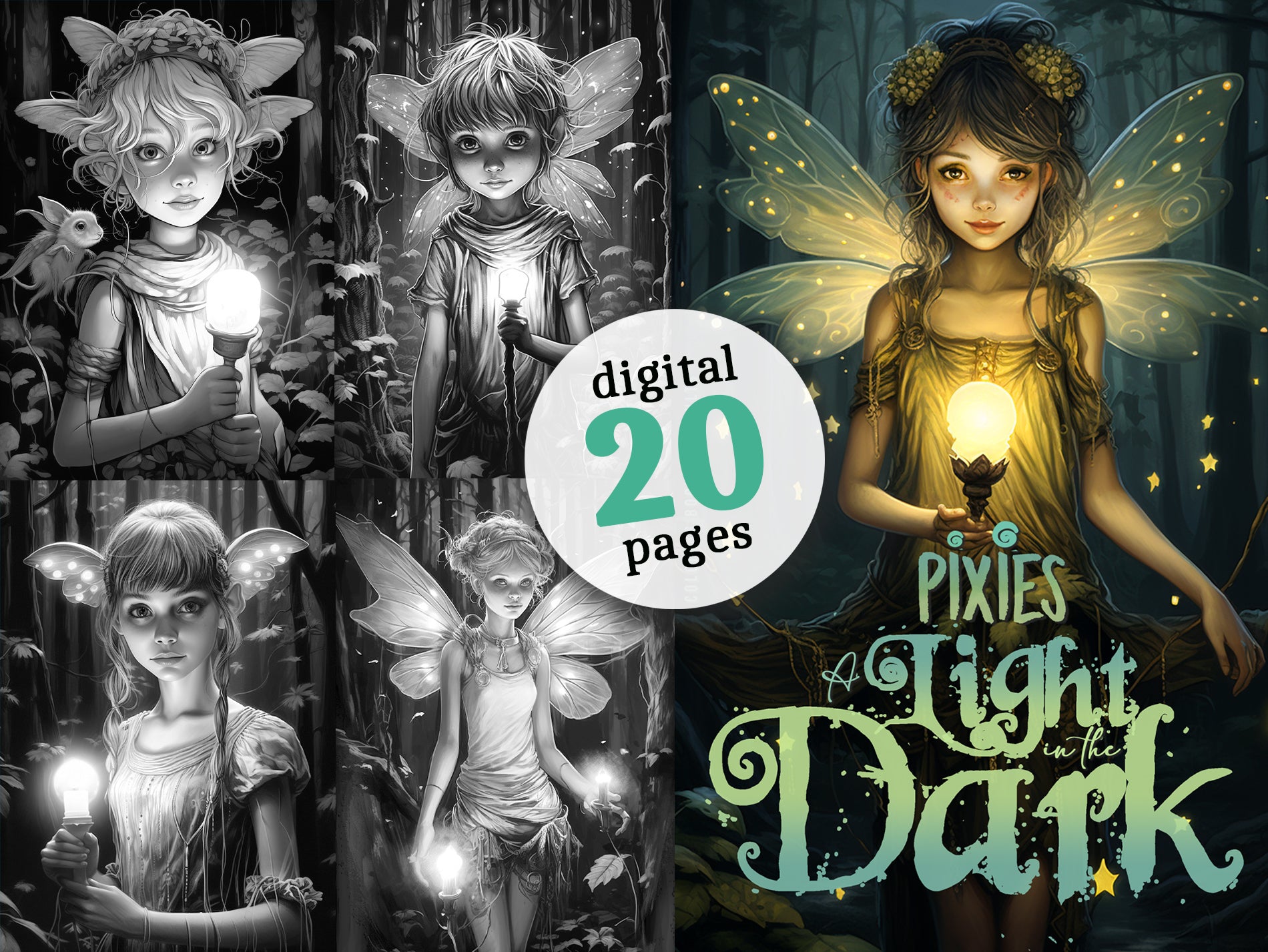 ★Pixies - A light in the Dark Grayscale Coloring Book printable★