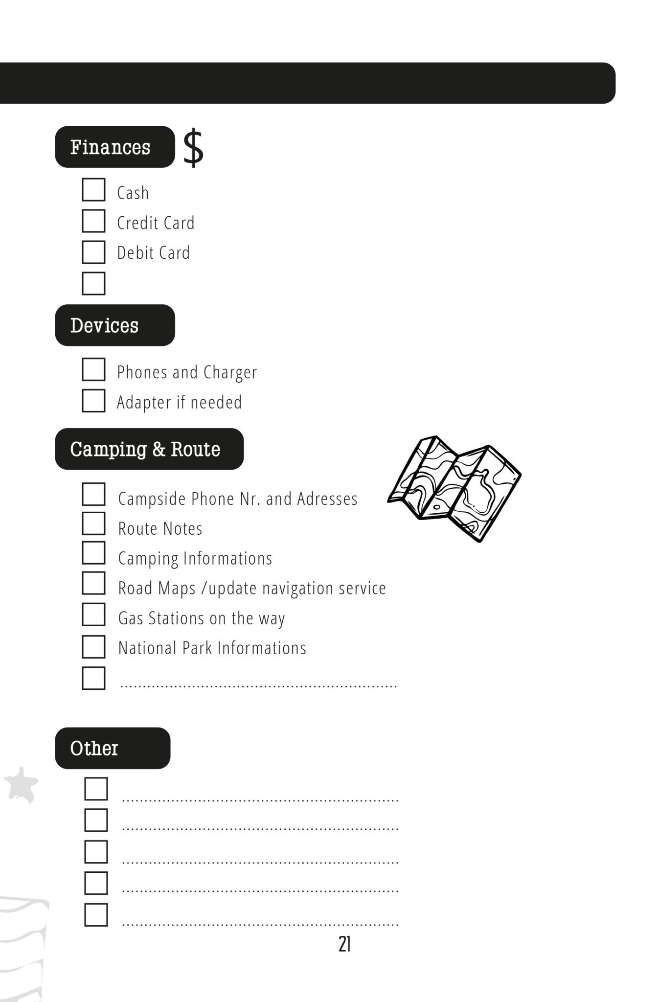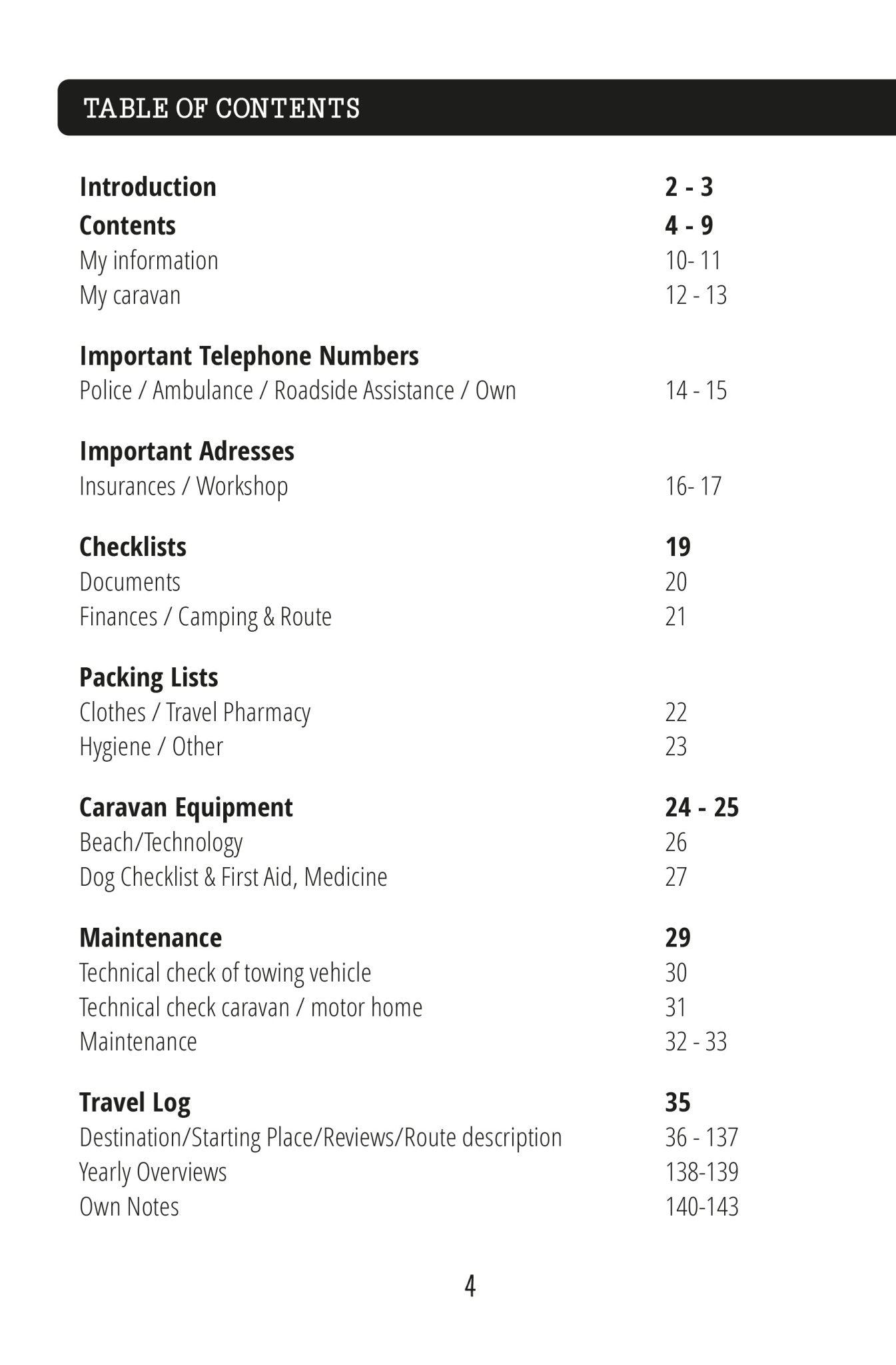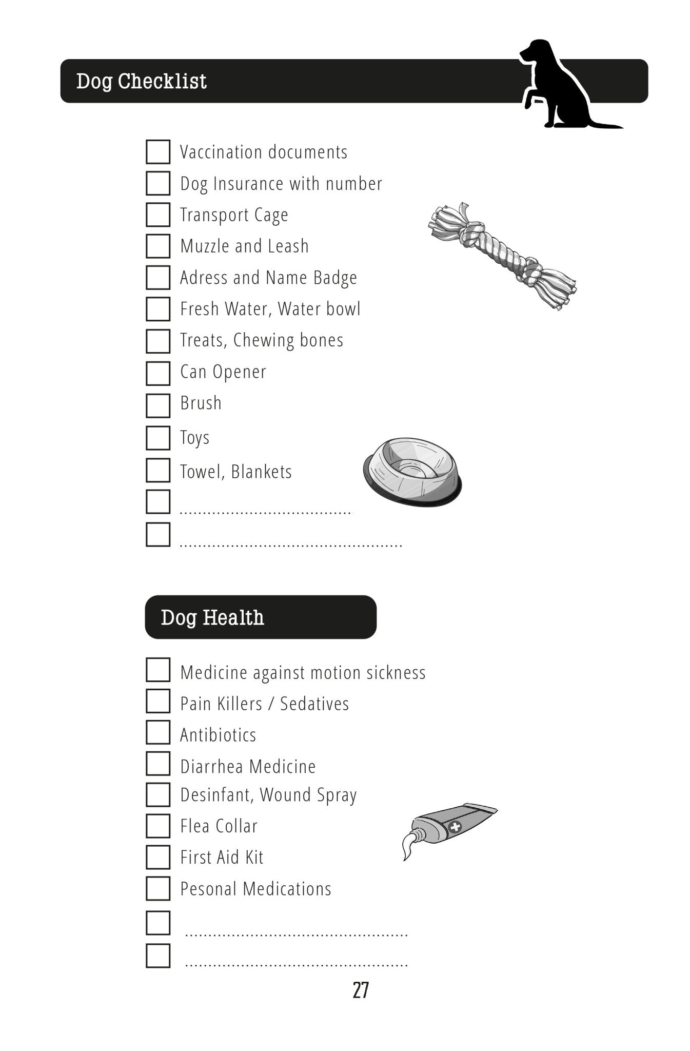 - packing lists for clothes, caravan equipment, and the beloved dog