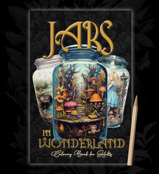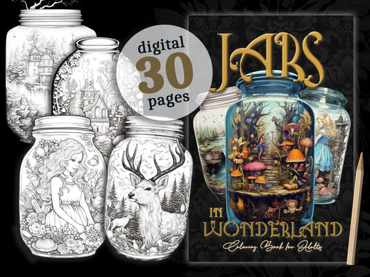 Jars in Wonderland Coloring Book Grayscale (Digital)