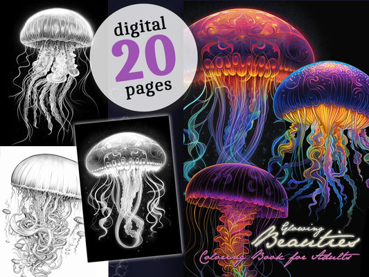 Jellyfish Ocean Coloring Book Grayscale (Digital)
