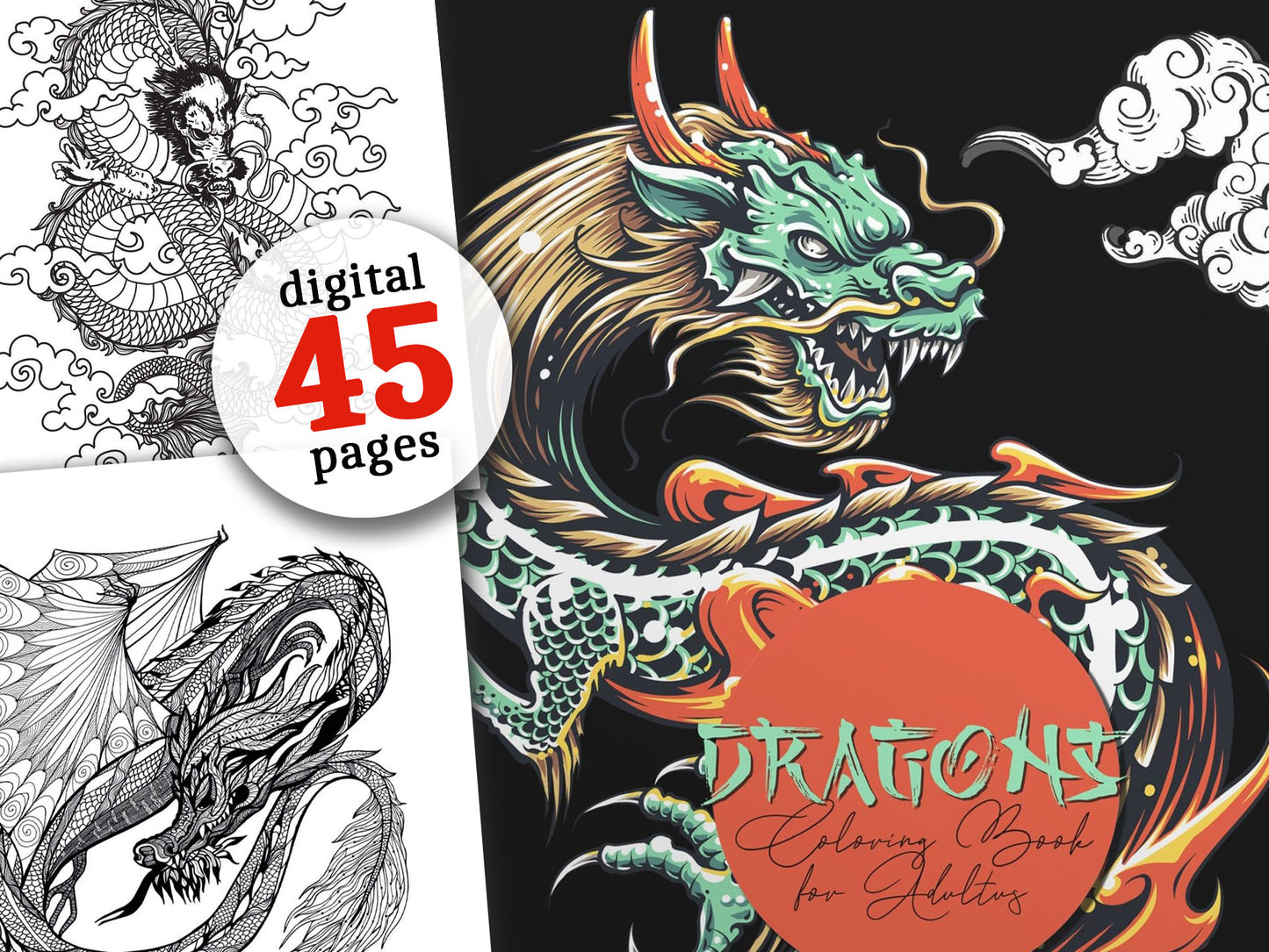 Dragons Coloring Book for Adults (Digital)