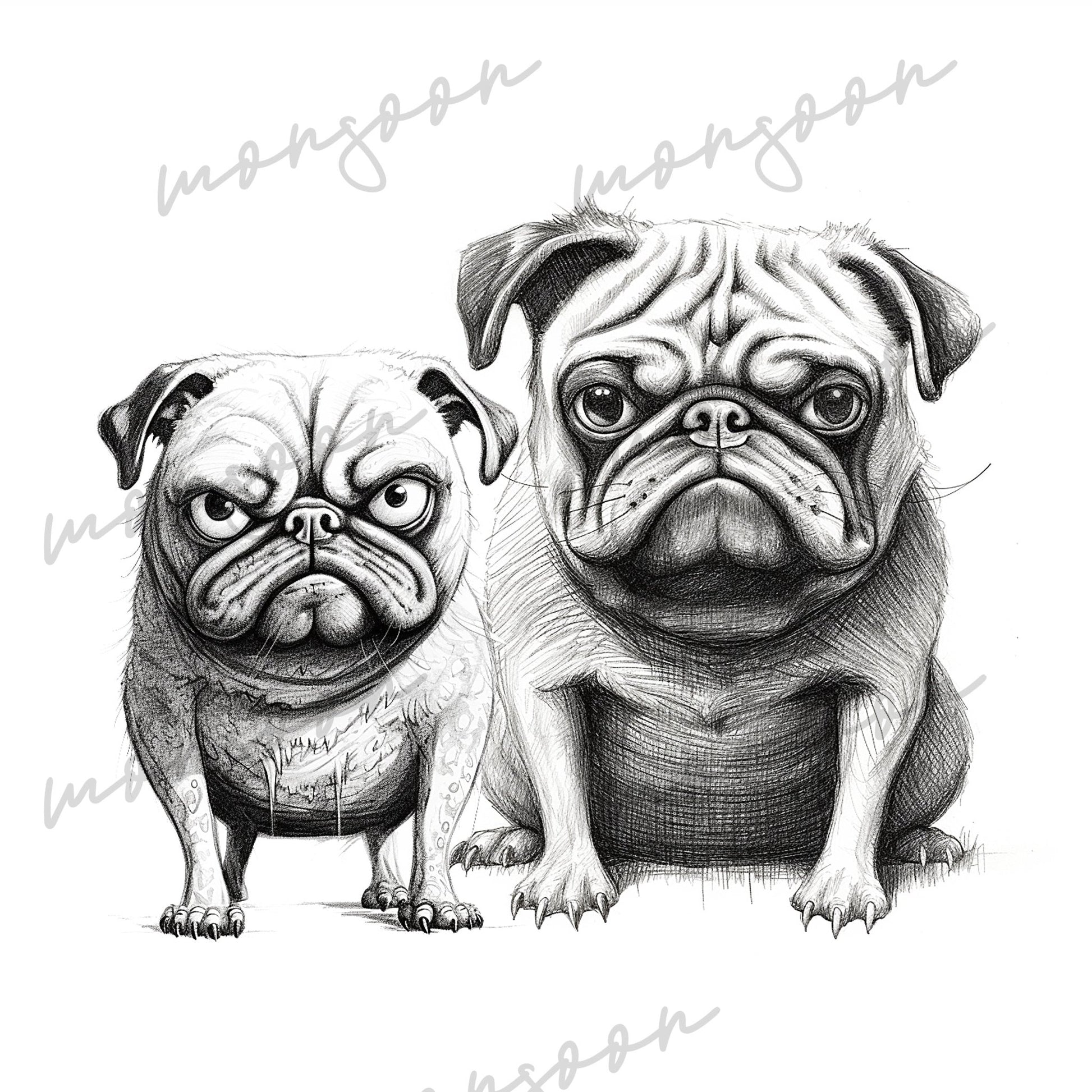 Grumpy Dogs Coloring Book Grayscale (Digital)