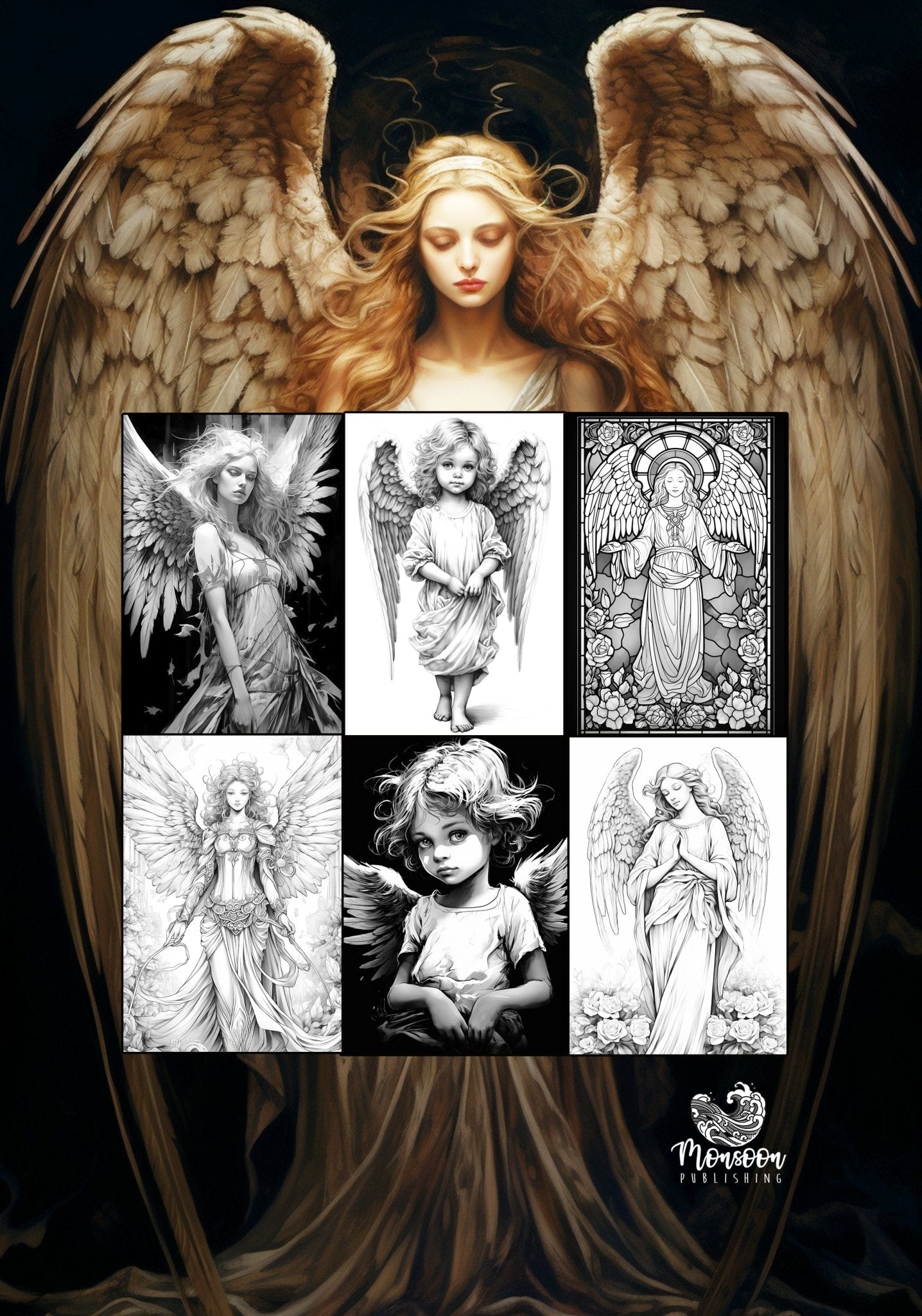 Angels come in a variety of forms: archangels, cherubs, fallen angels, cute angels, heroic guardian angels, biblical angels. A selection of very different angels to color in.