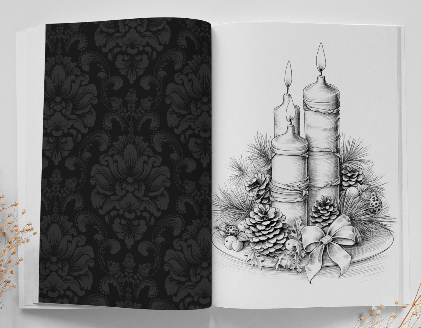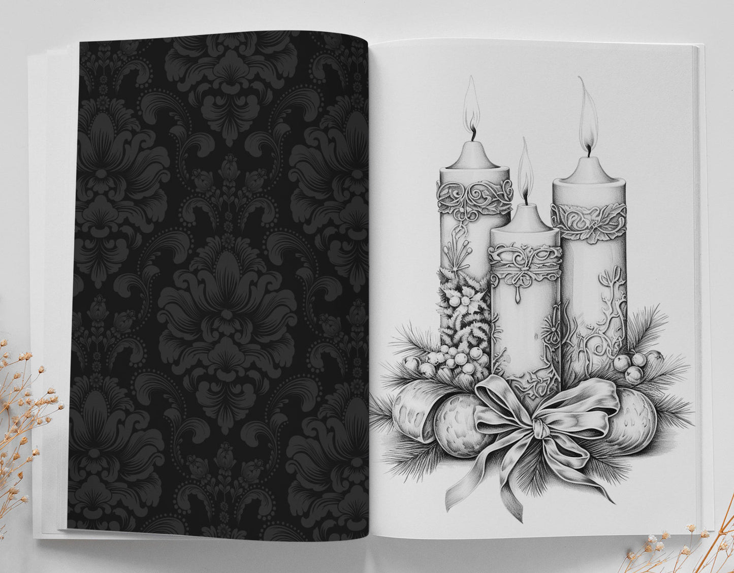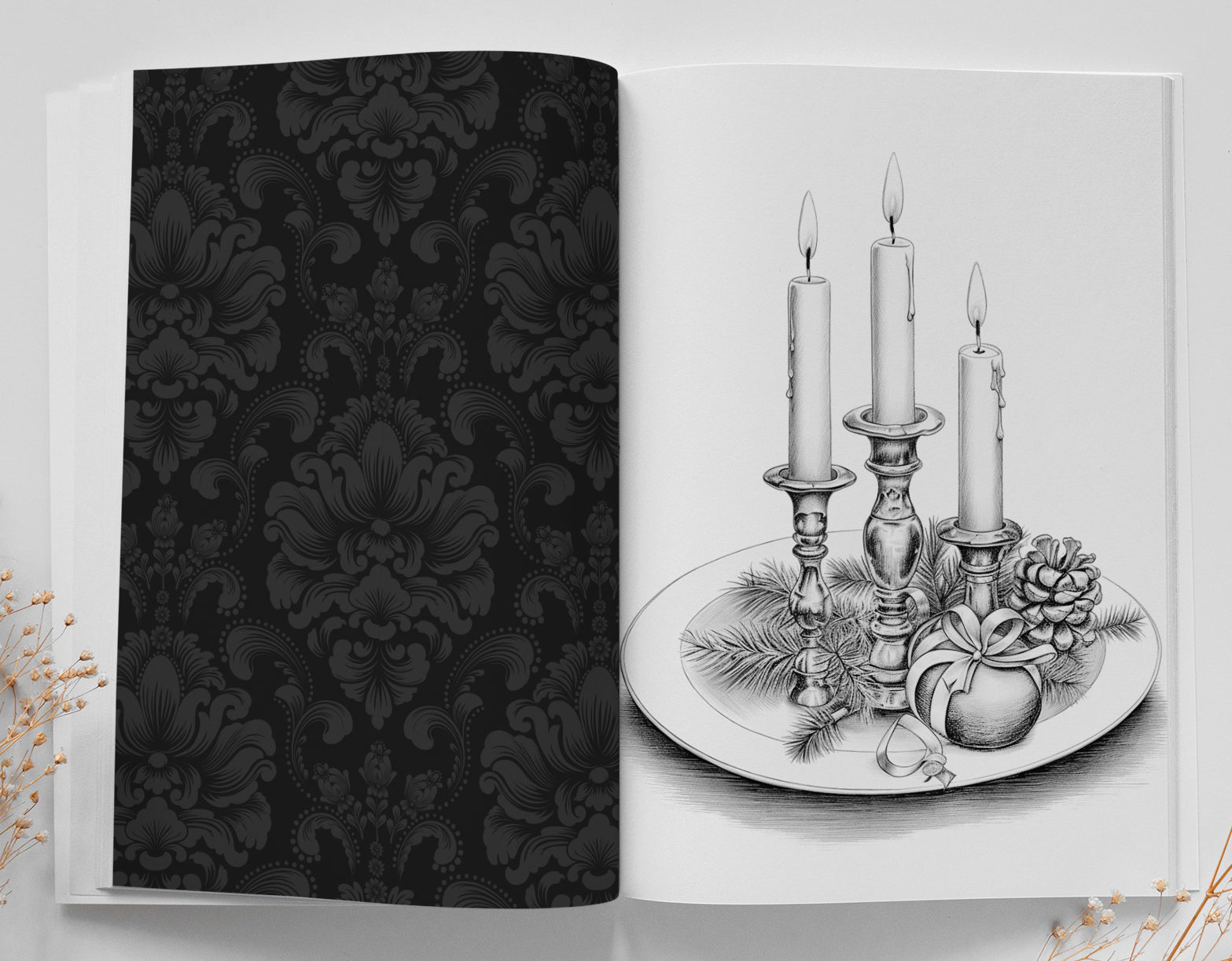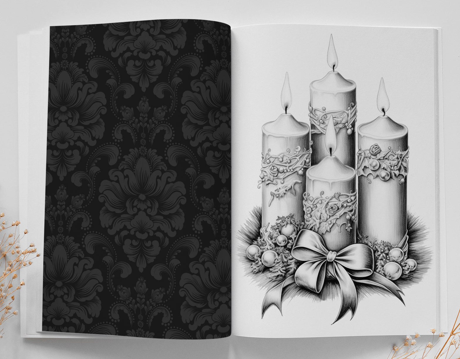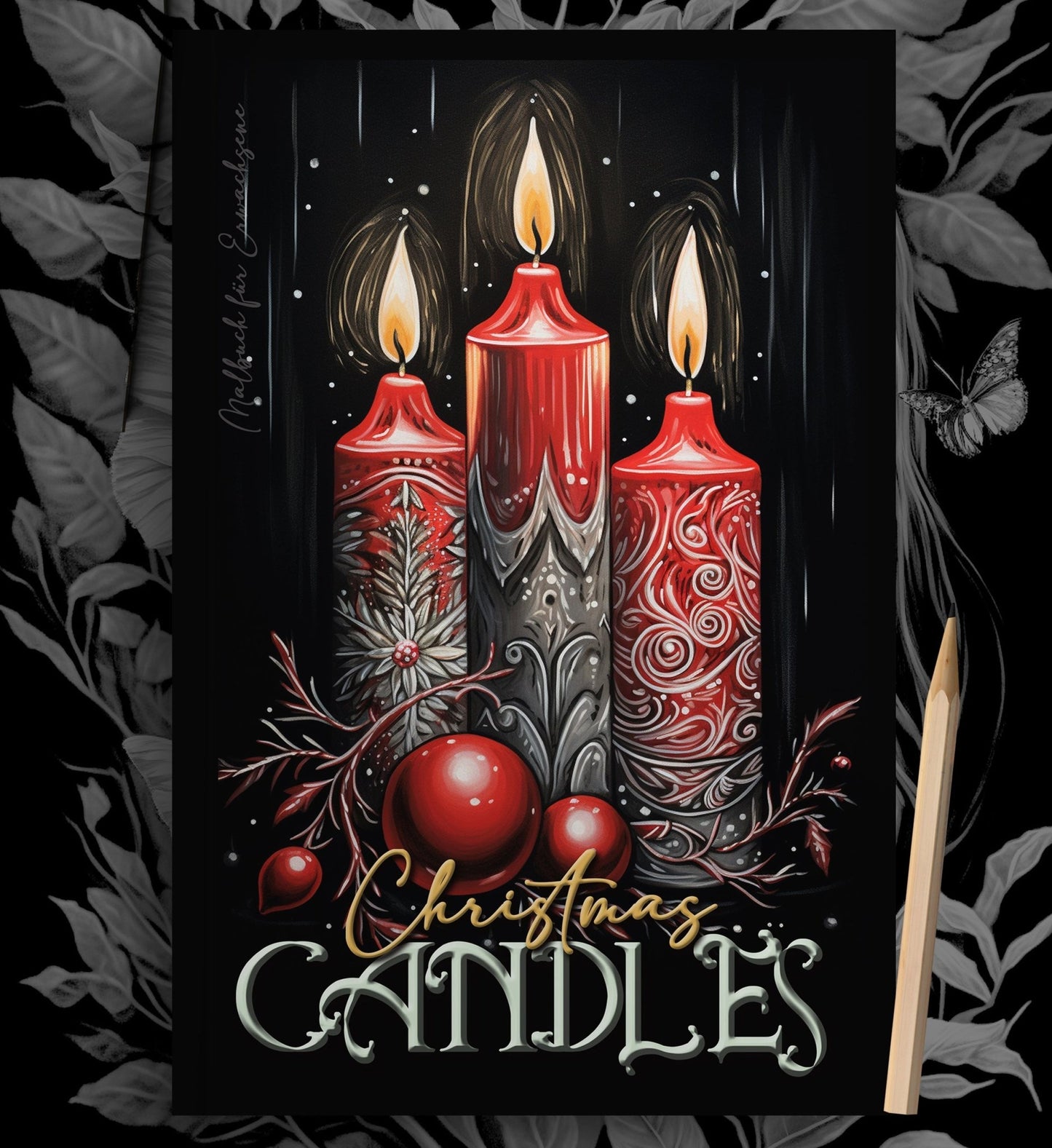 Beautiful Christmas Candles for cozy and calming hoursThe coloring book includes