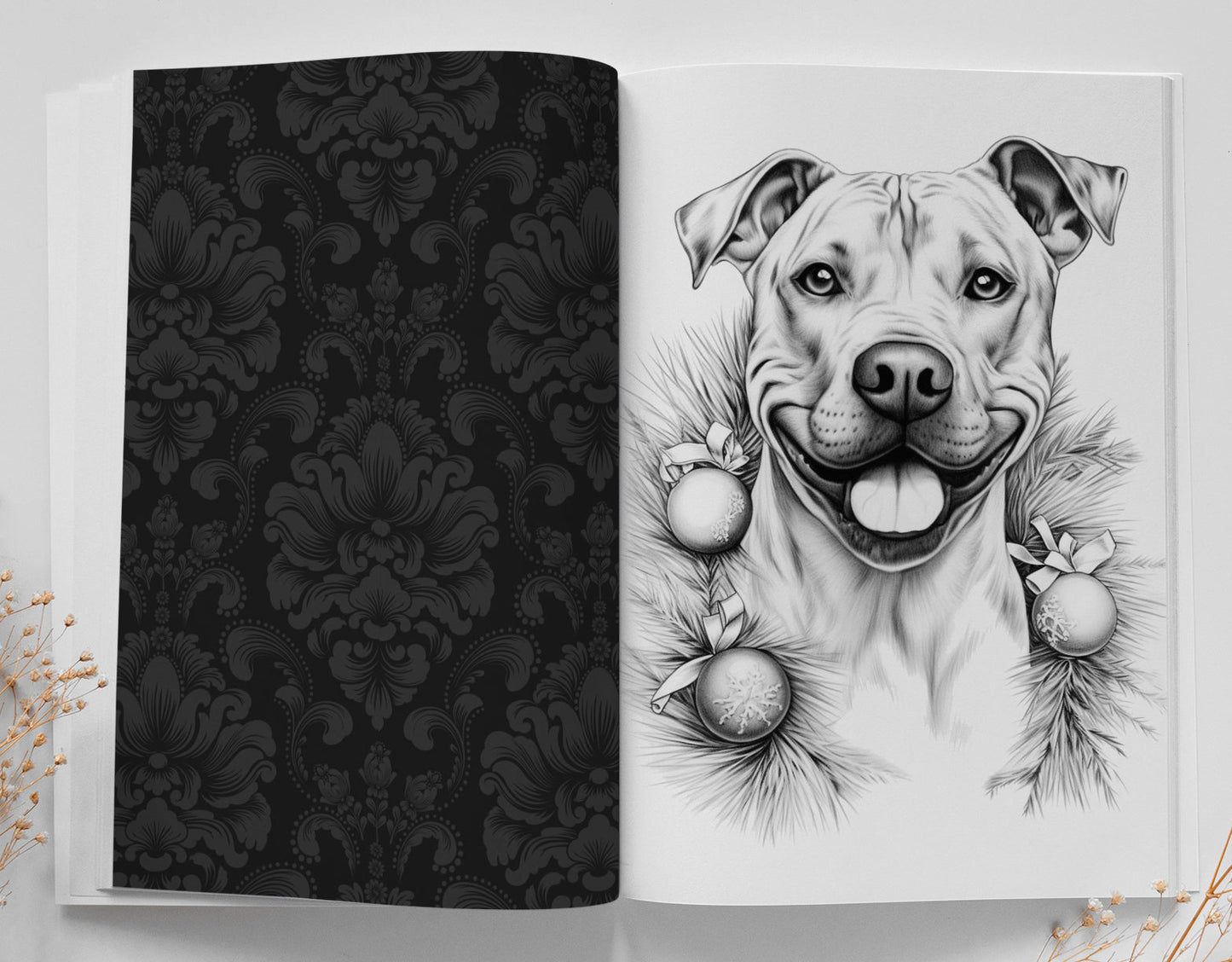 A lovely Christmas Coloring Book with beautiful decorated Dogs