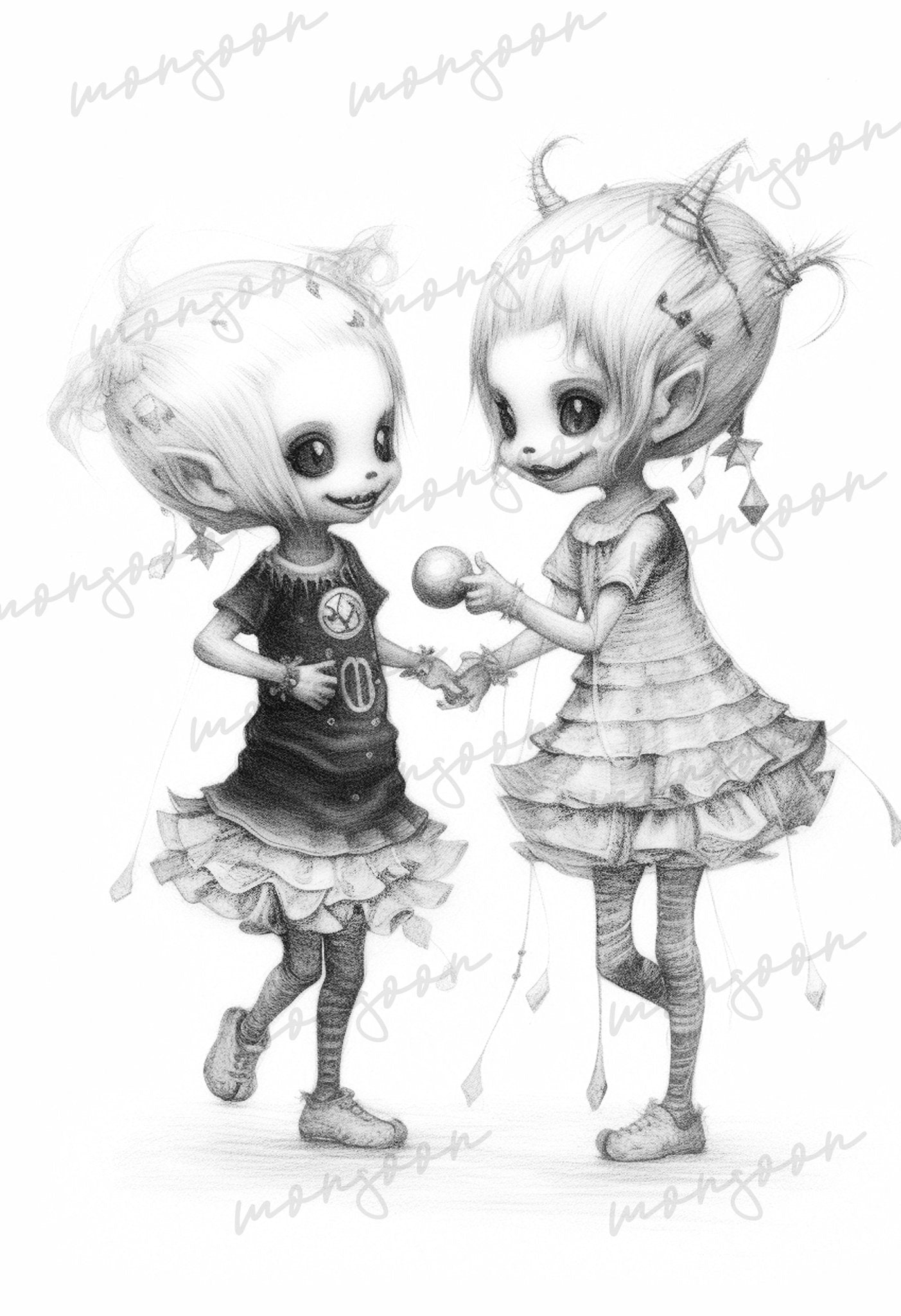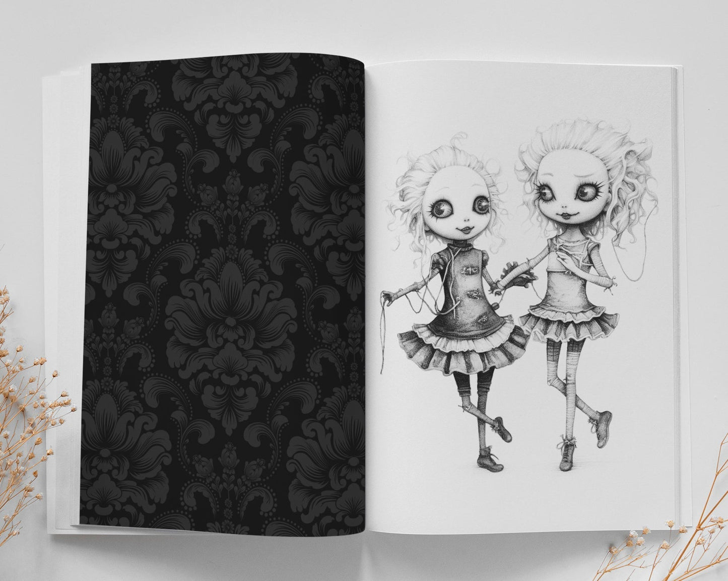 ★Cute Creepy Dolls Grayscale Coloring Book printable ★