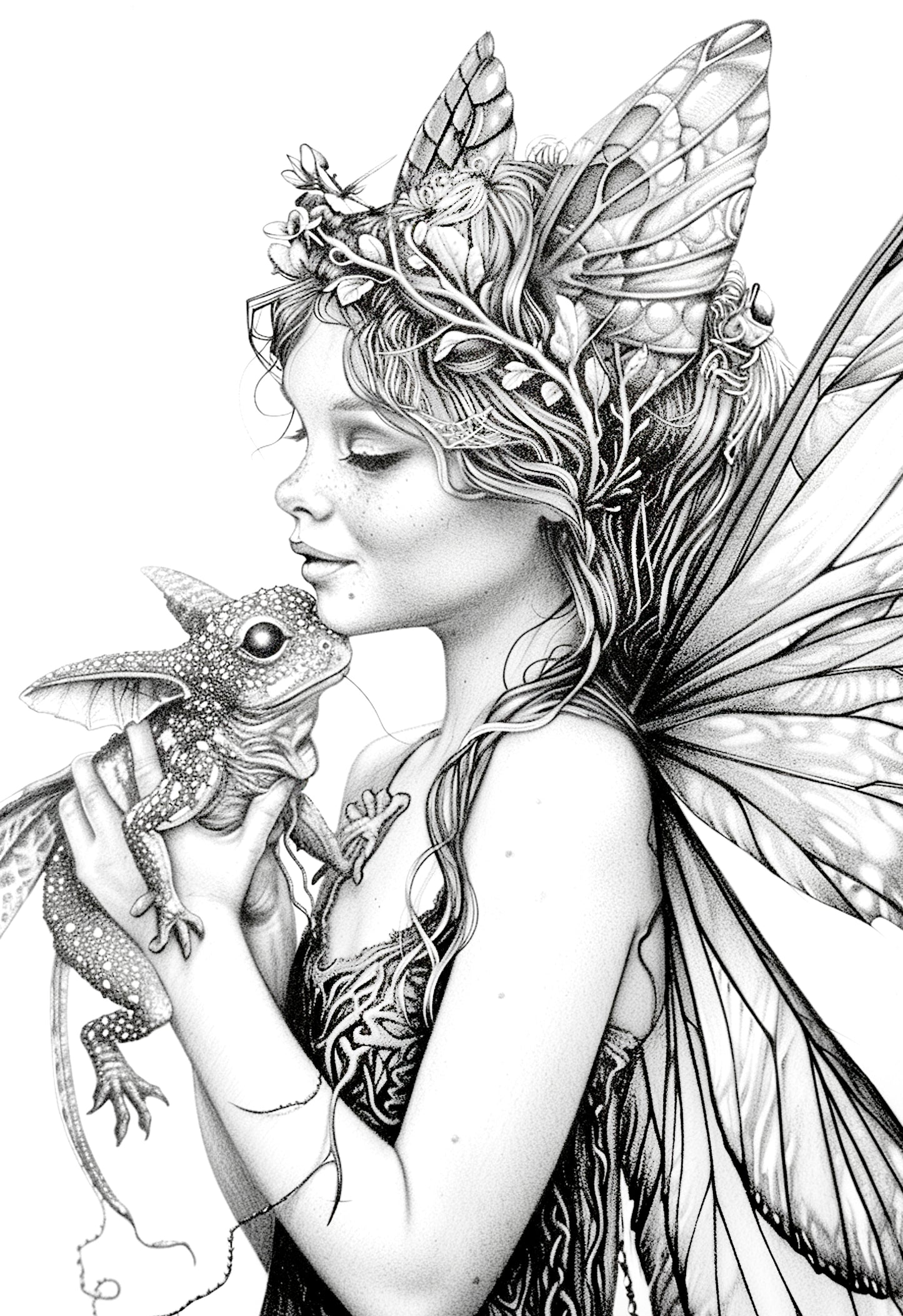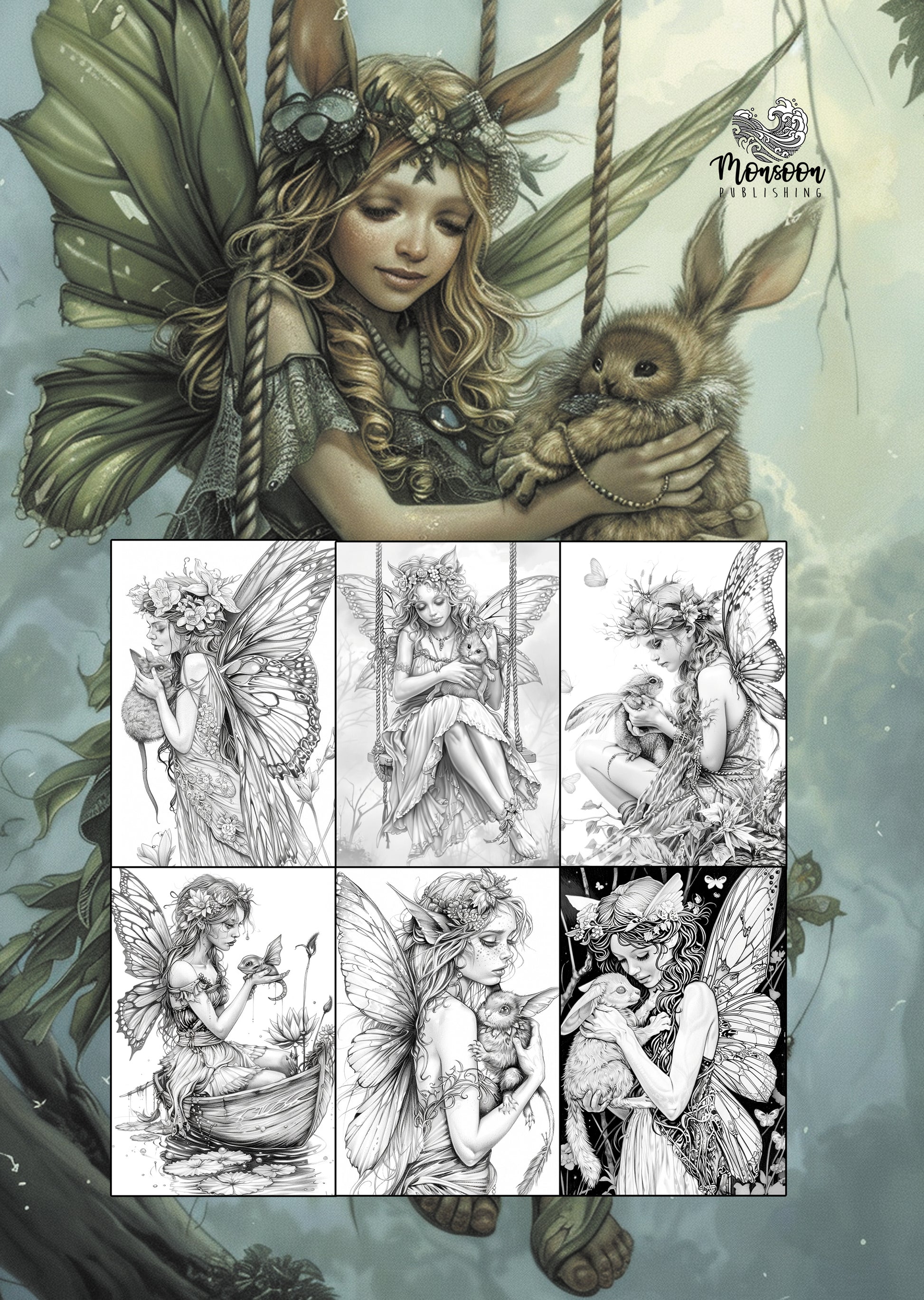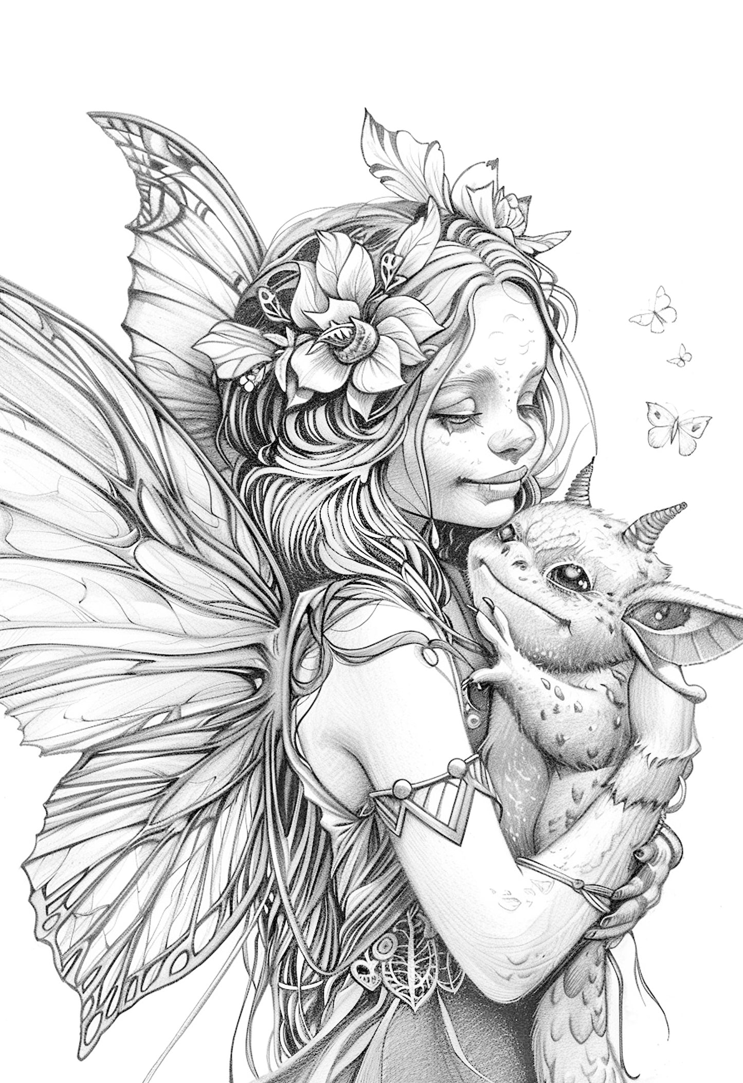 A wonderful coloring book with beautiful fairies and their "pets" - cute mystical beings and creatures with wings and magical powers.