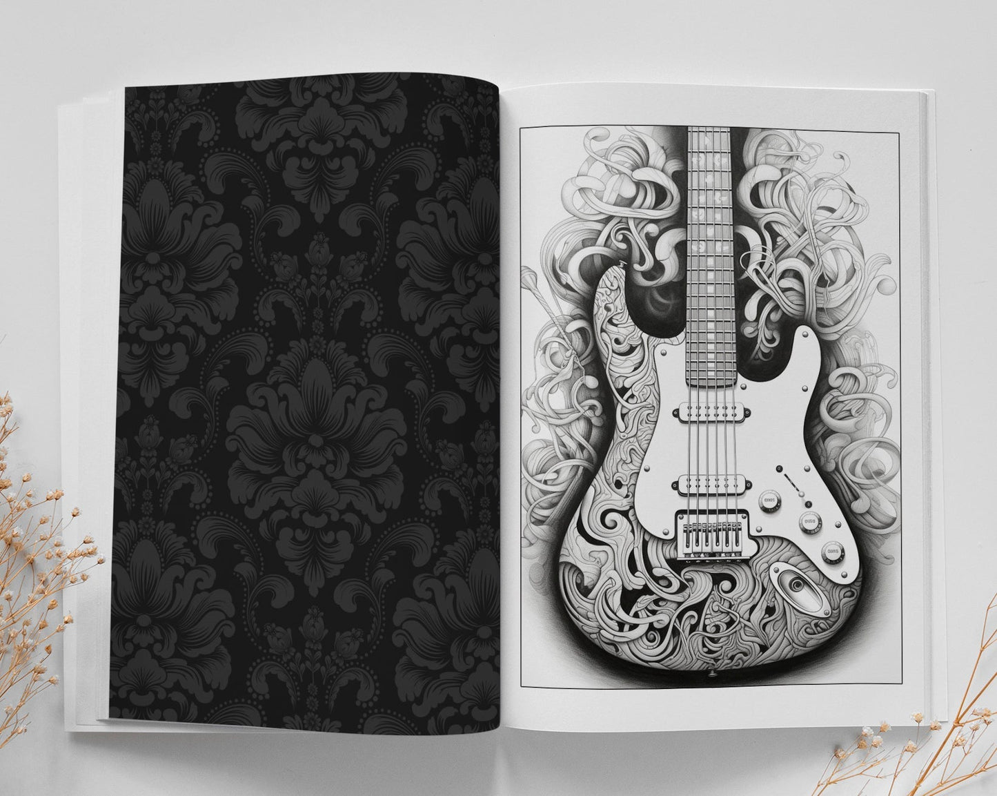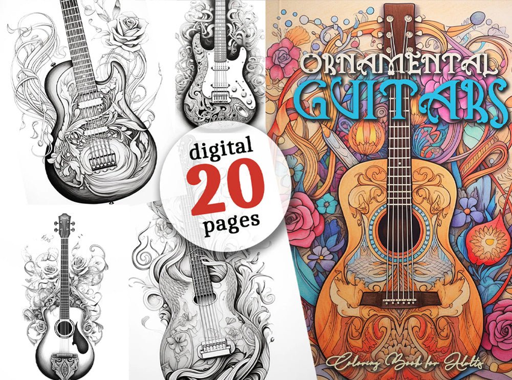 Ornamental Guitars Coloring Book Grayscale (Digital)