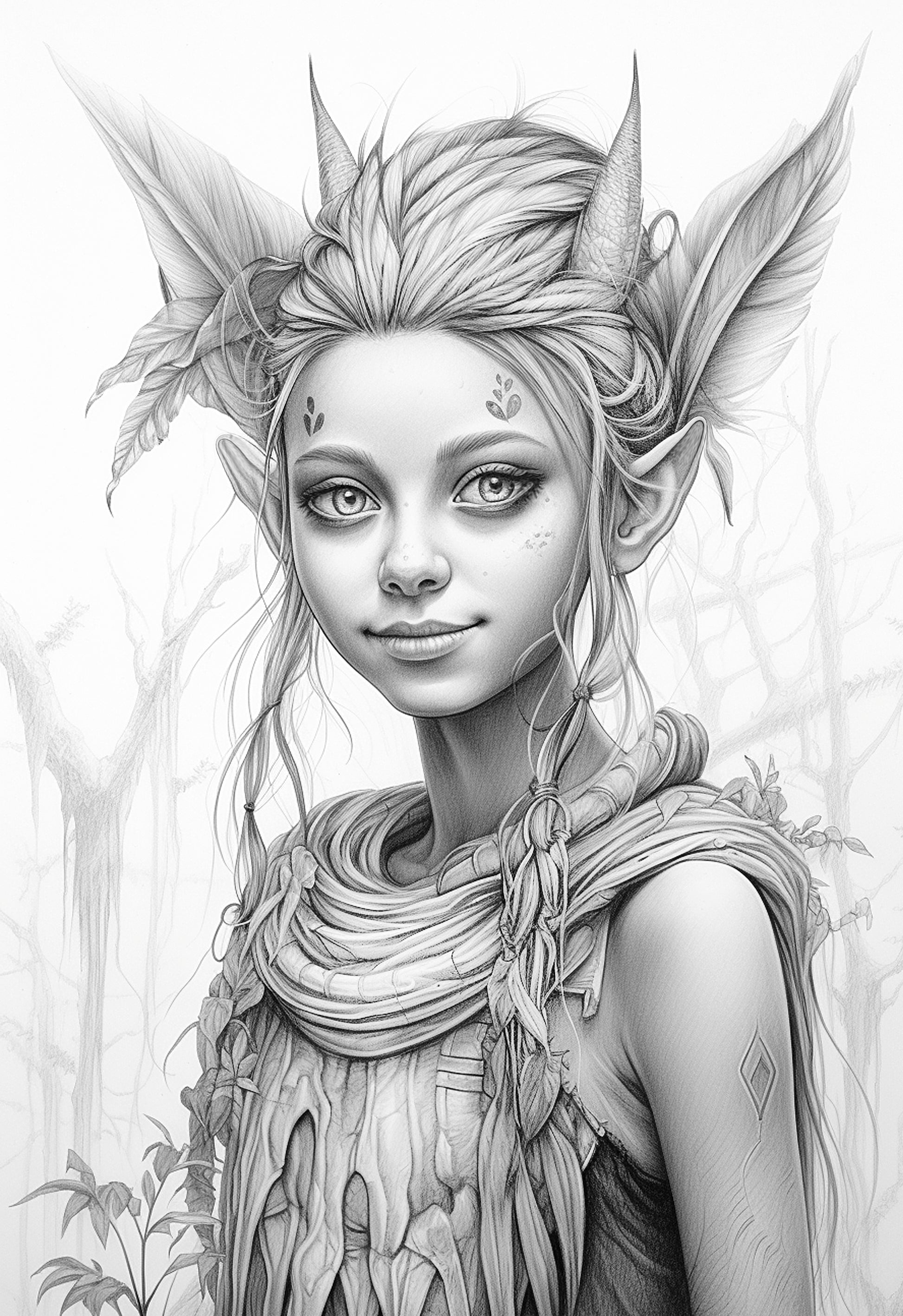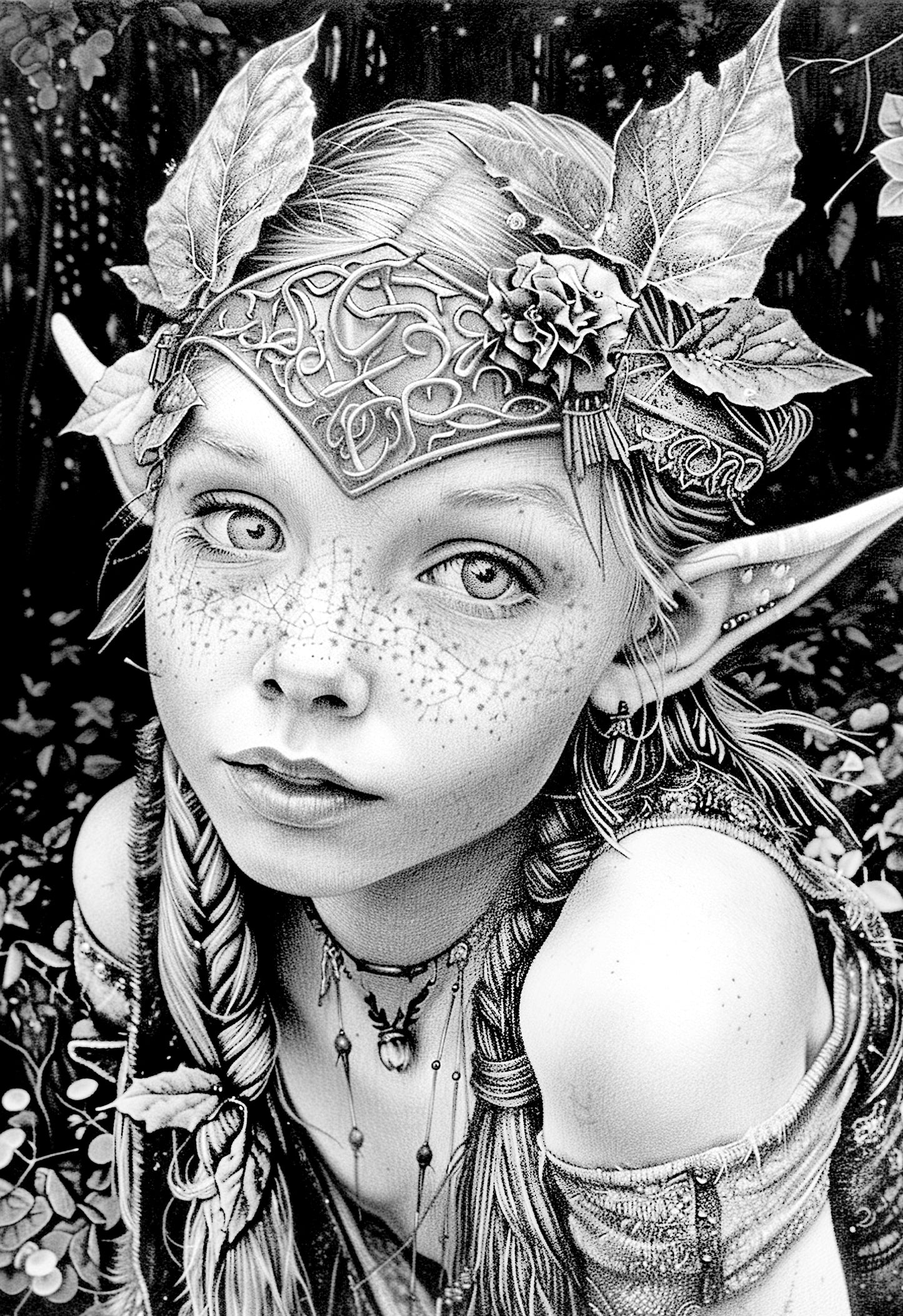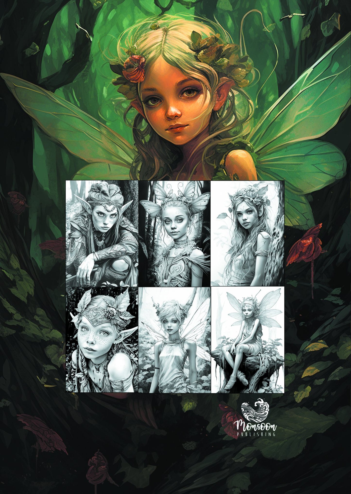 A wonderful coloring book with beautiful elves/pixies in the forest
