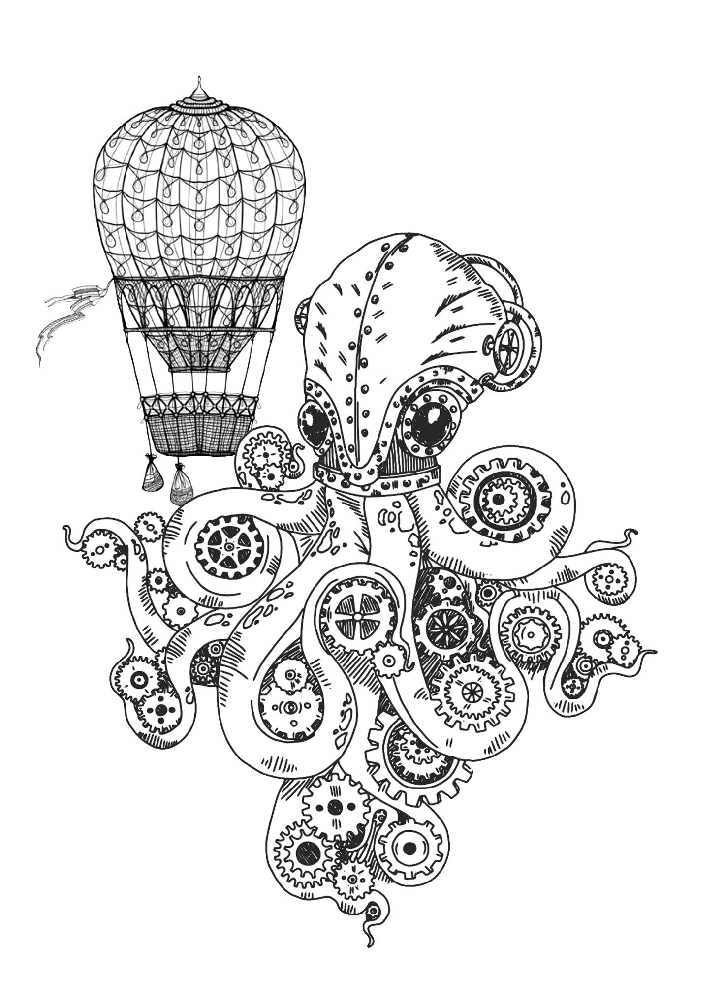 Outstanding Steampunk Coloring Book for Adults - DIGITAL