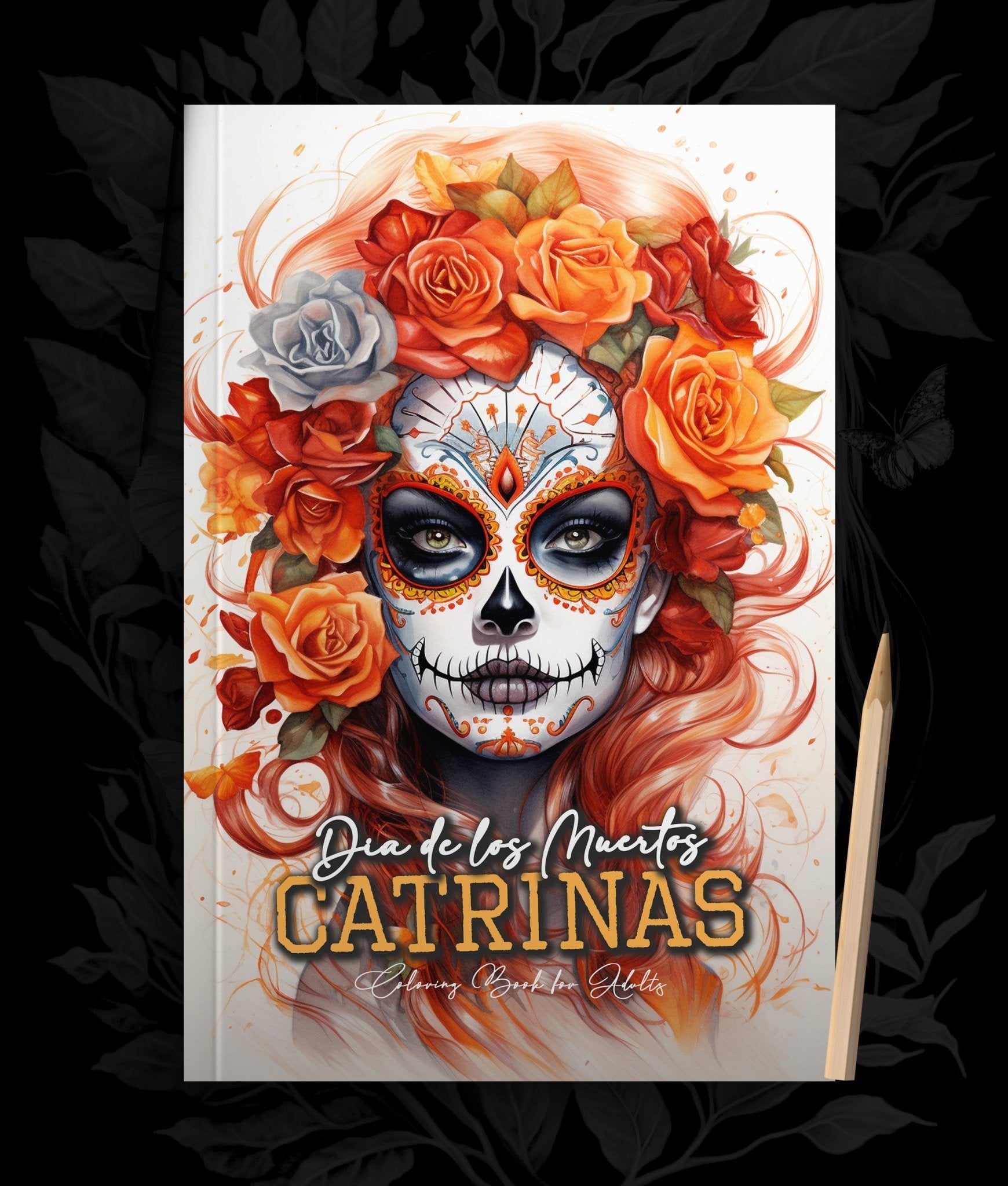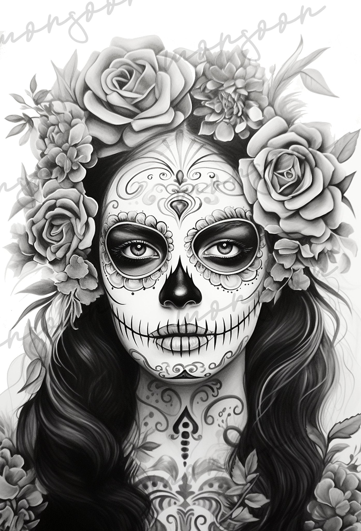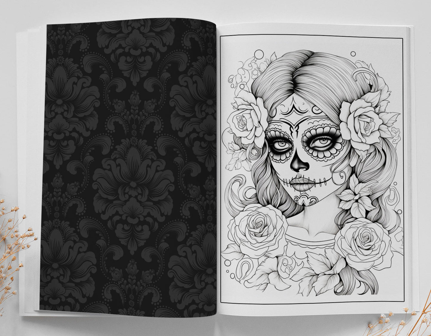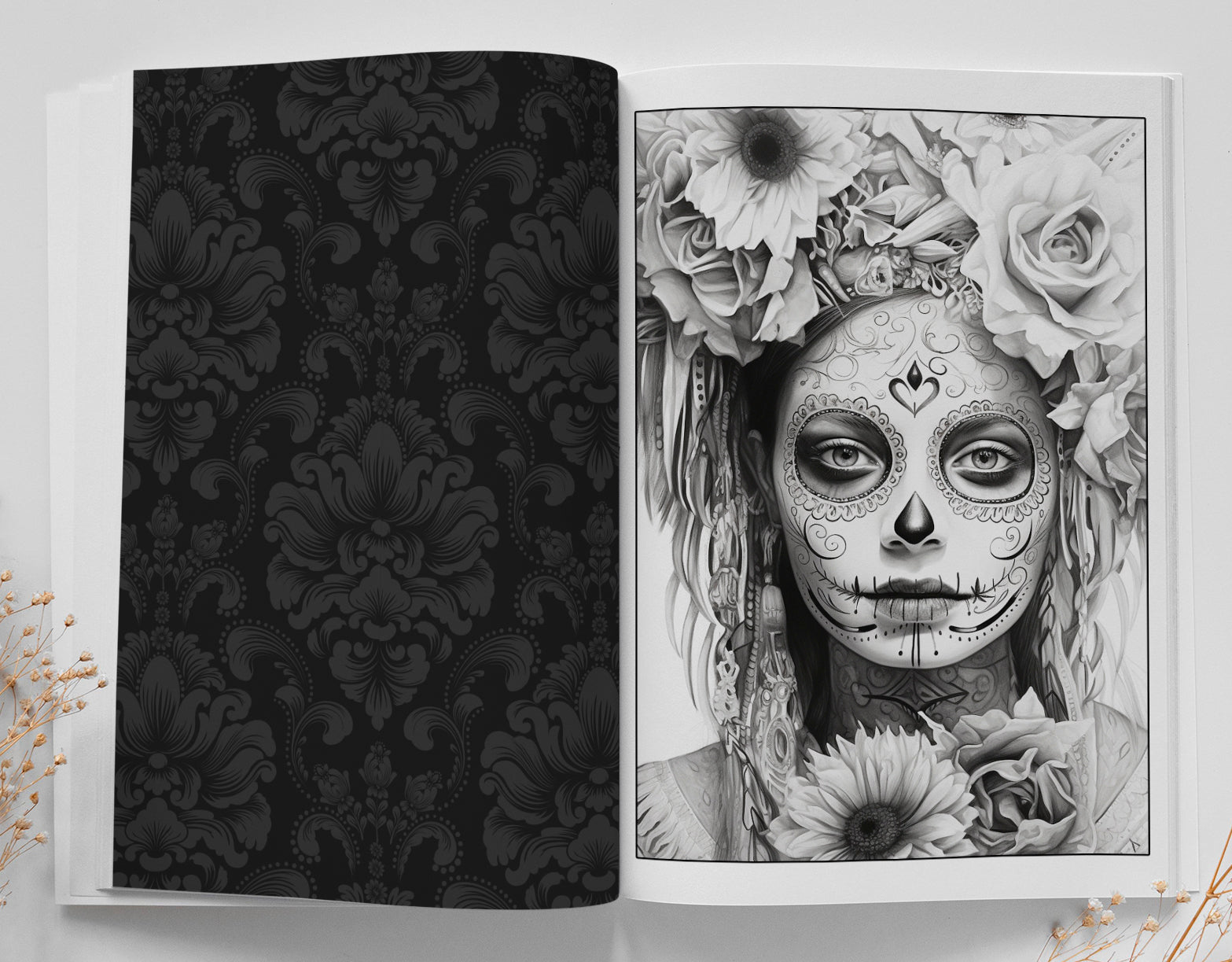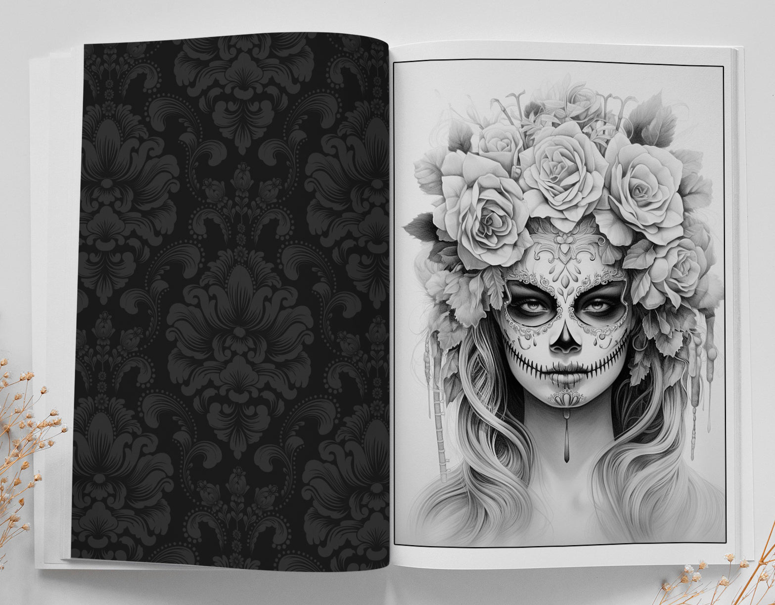 Creepy Day of the Dead Sugar Skulls Grayscale Coloring Book for Adults
