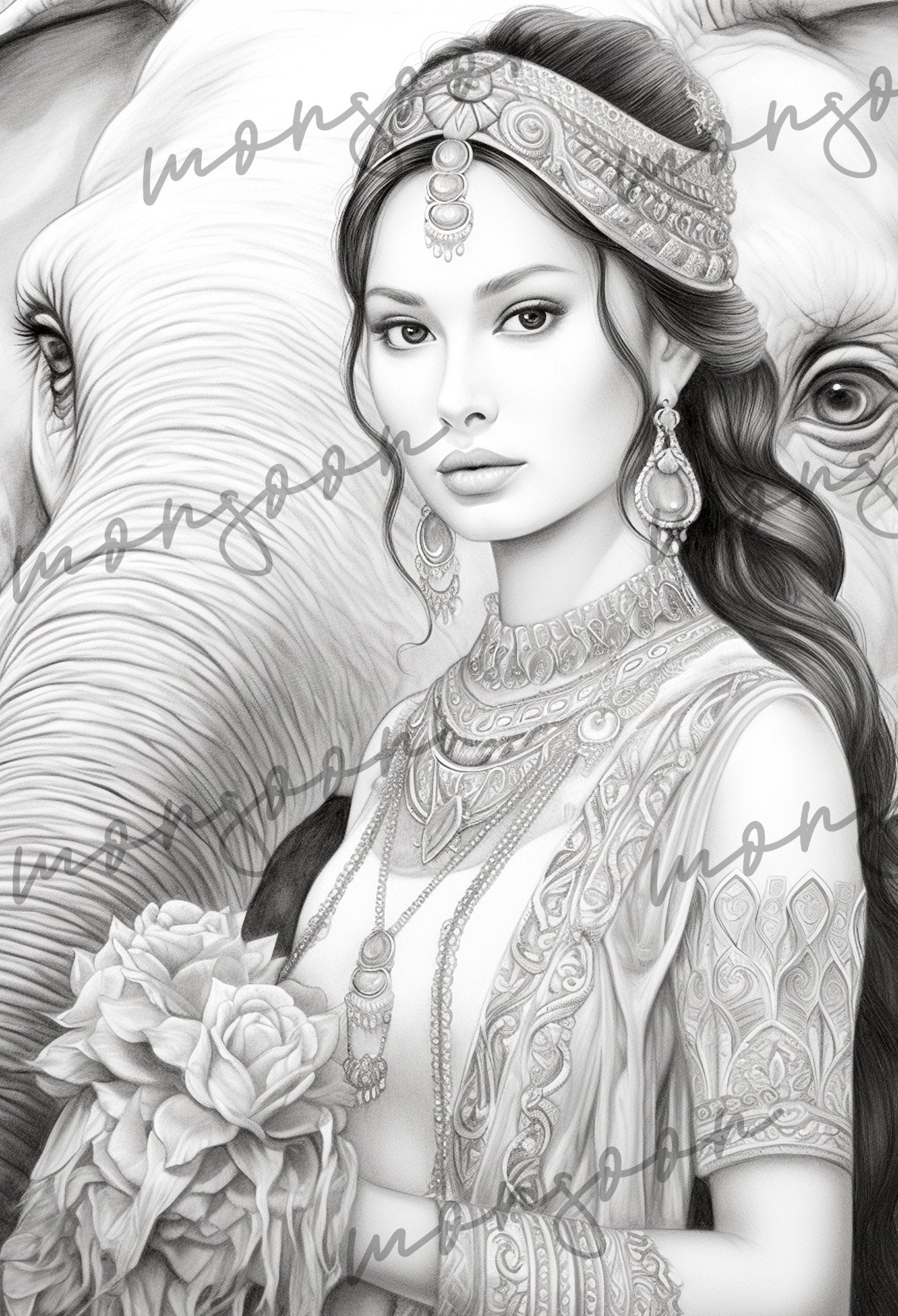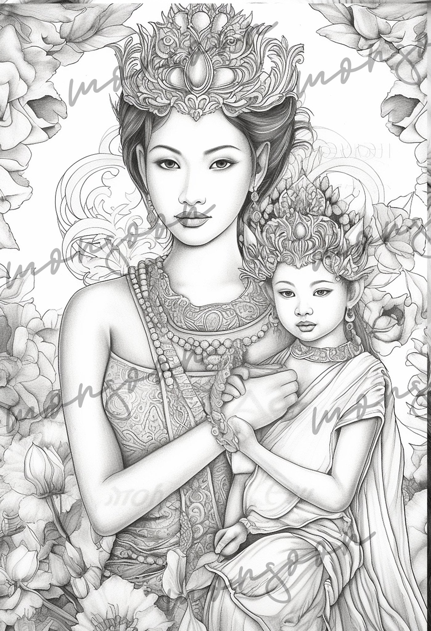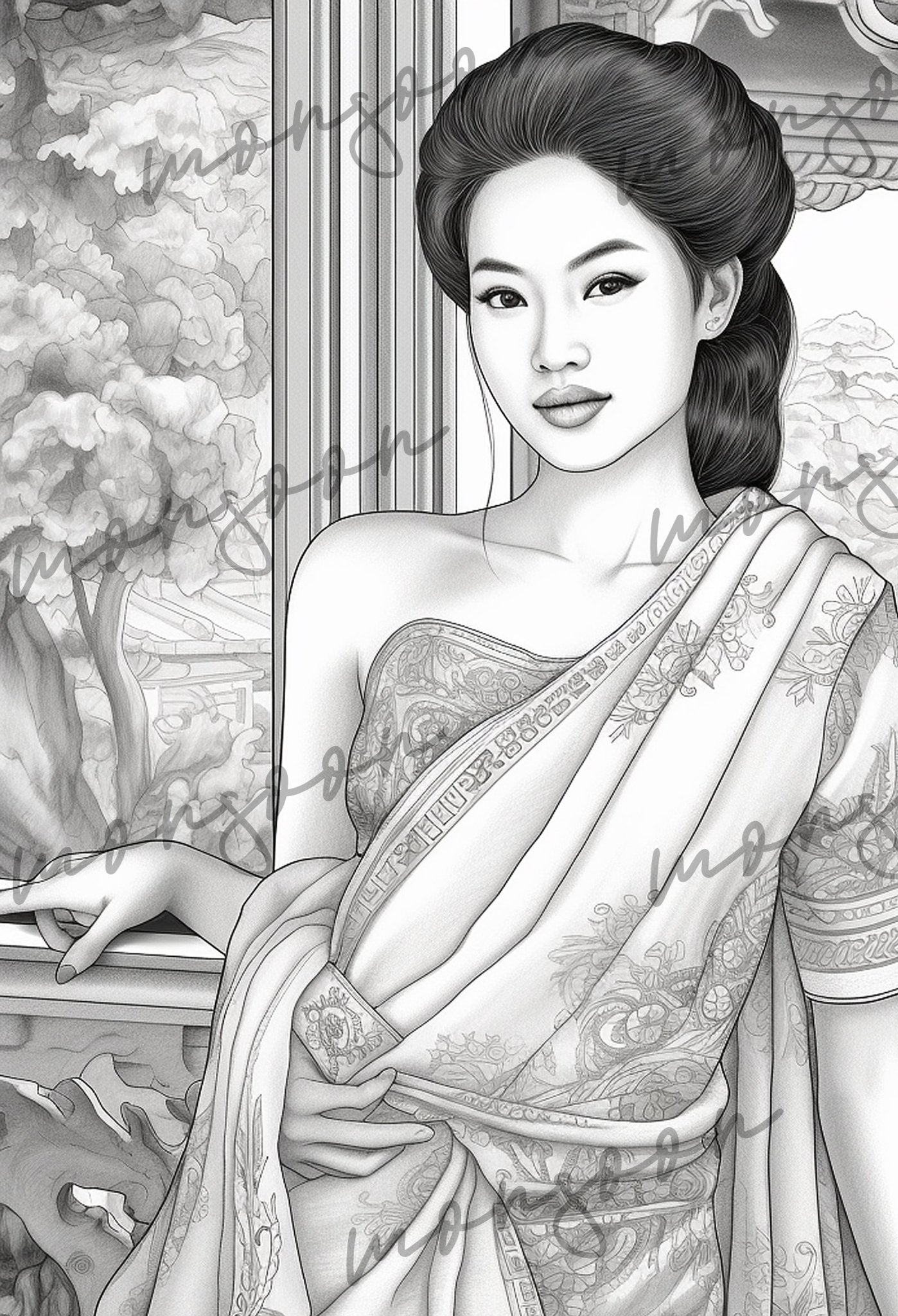 ★Traditional Thai Beauties Grayscale Coloring Book ★