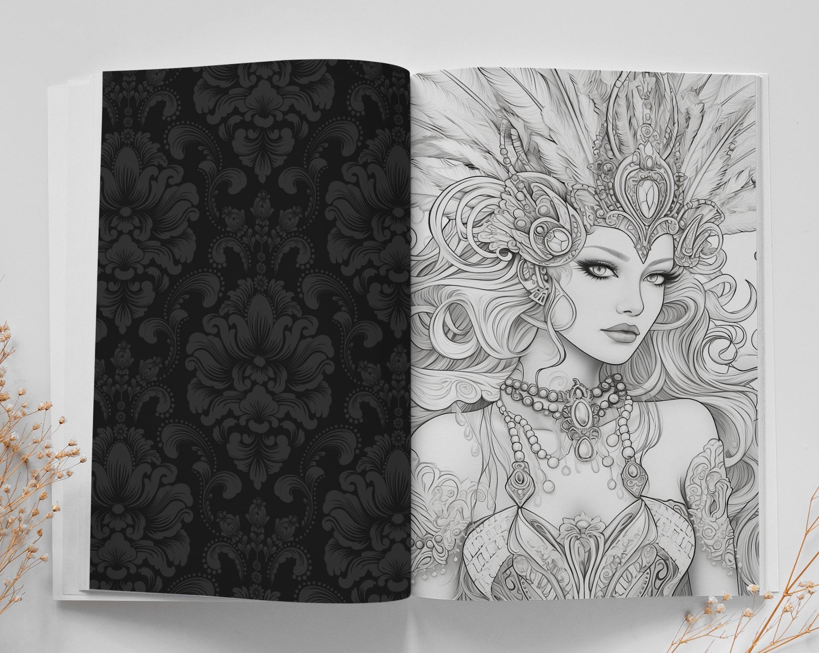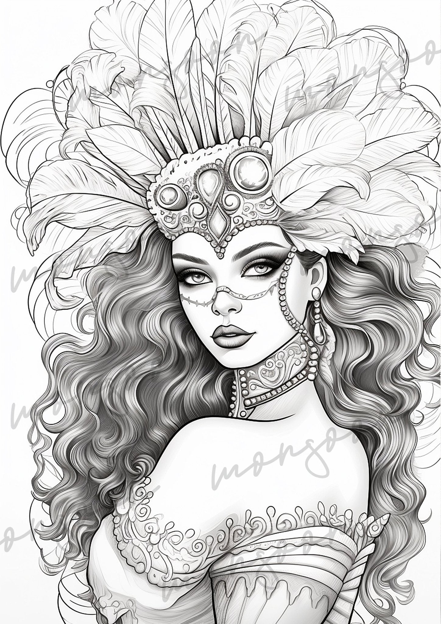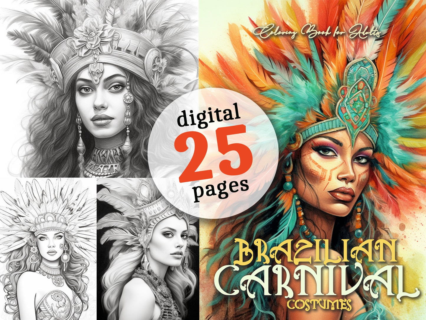 ★Brazilian Carnival Costumes Grayscale Coloring Book printable★