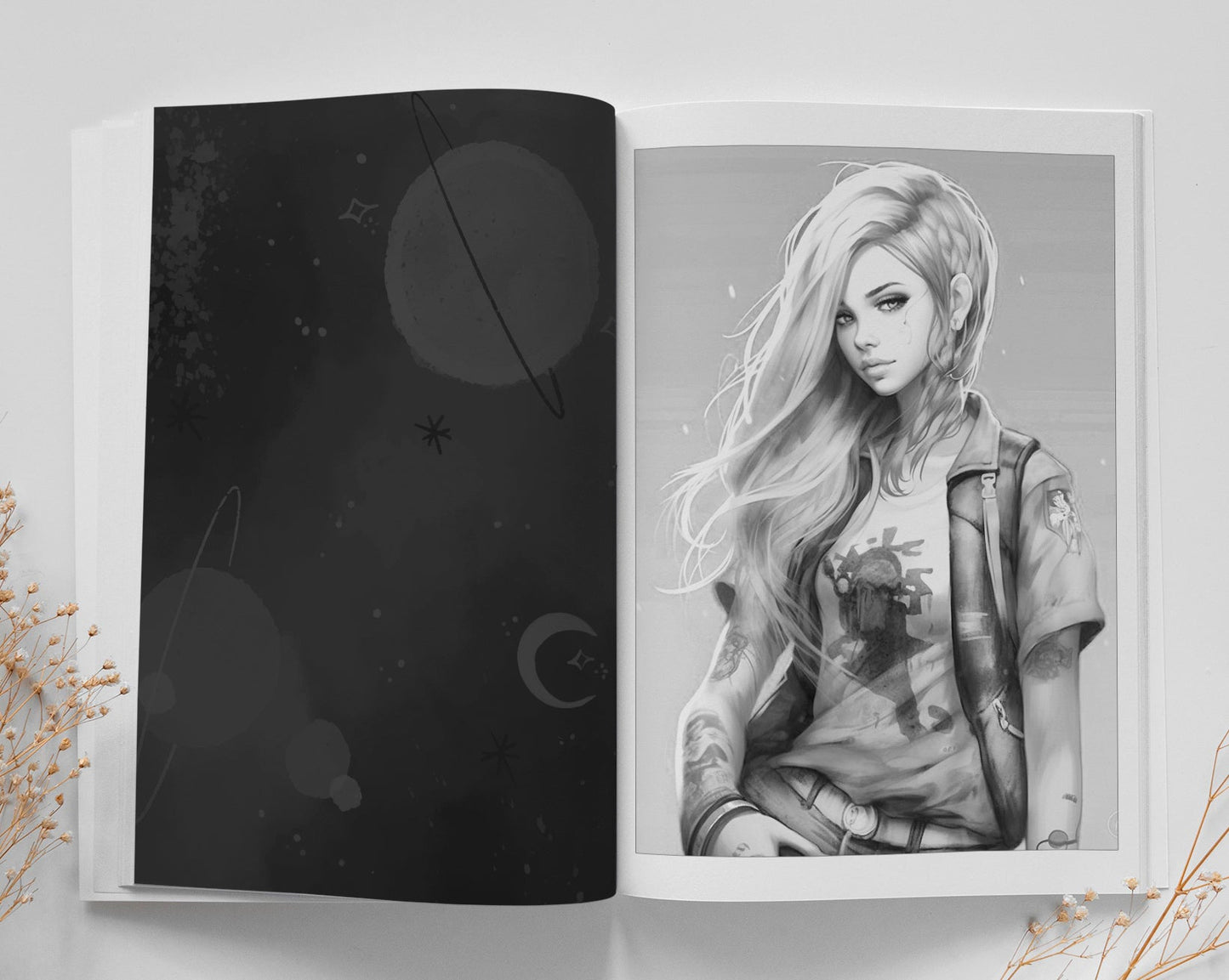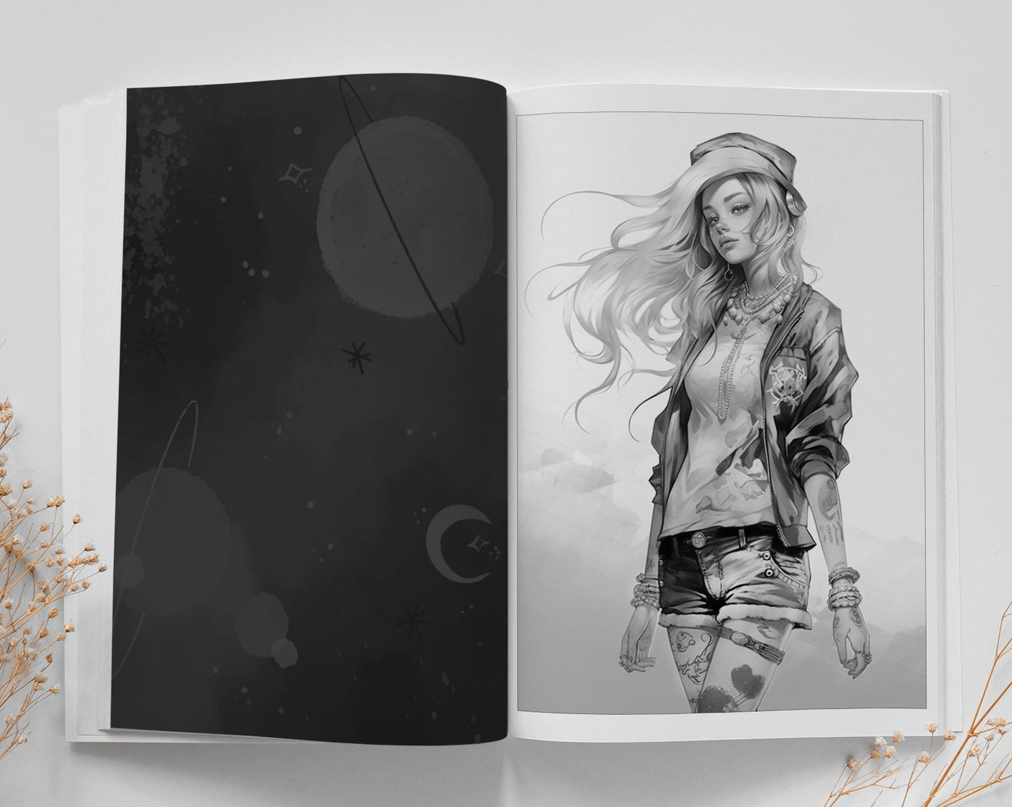 Celestial Punk Coloring Book Grayscale (Printbook)