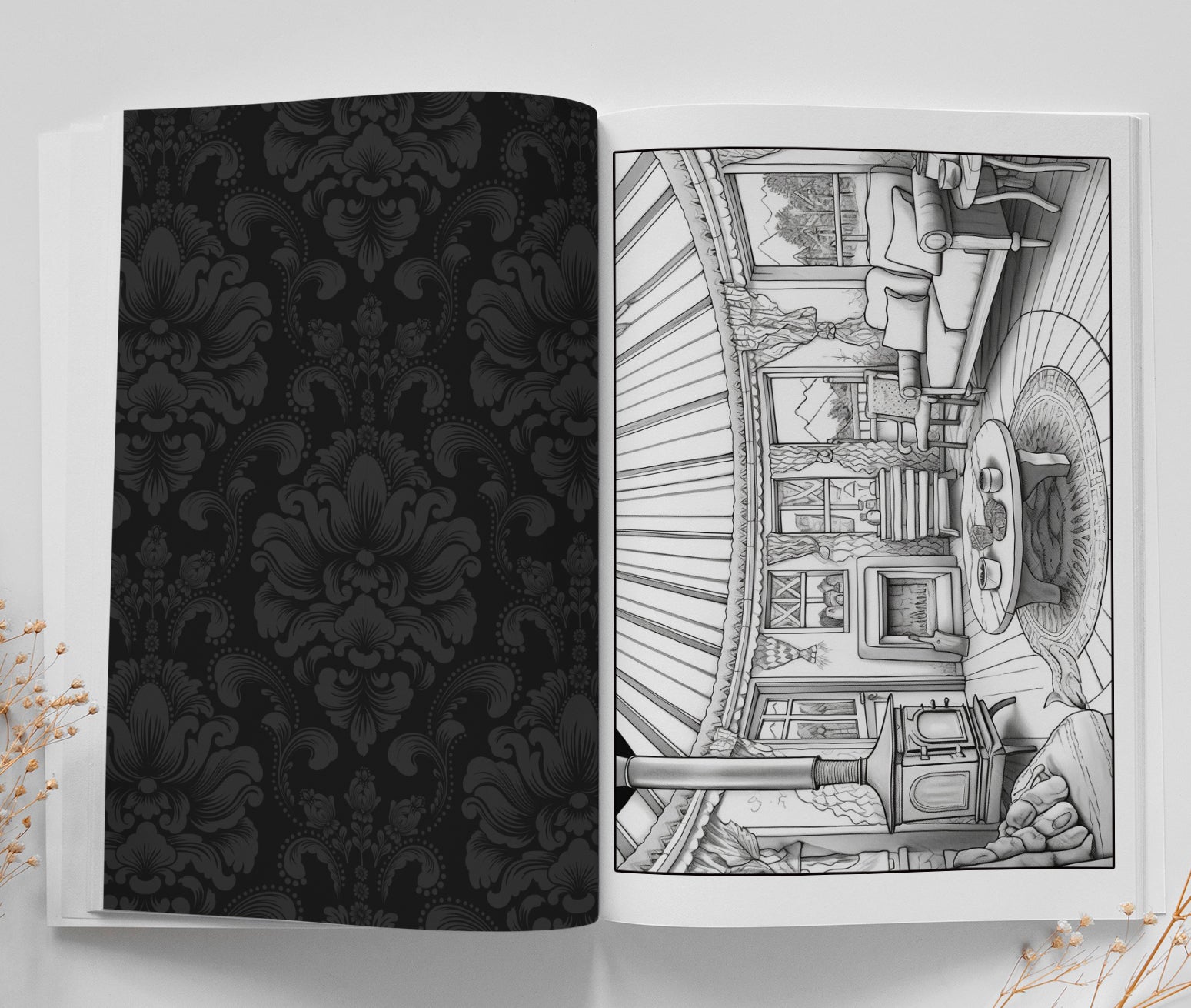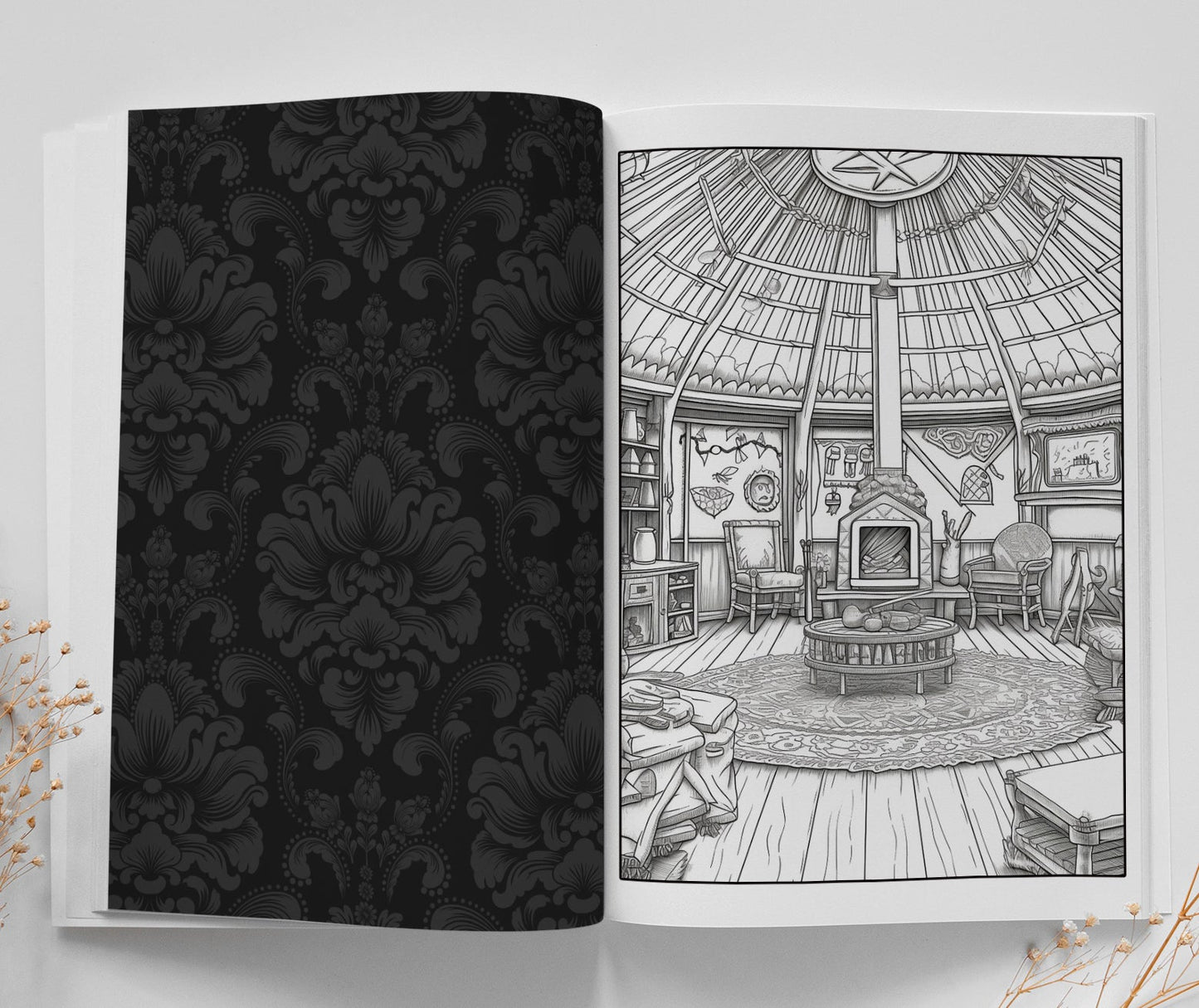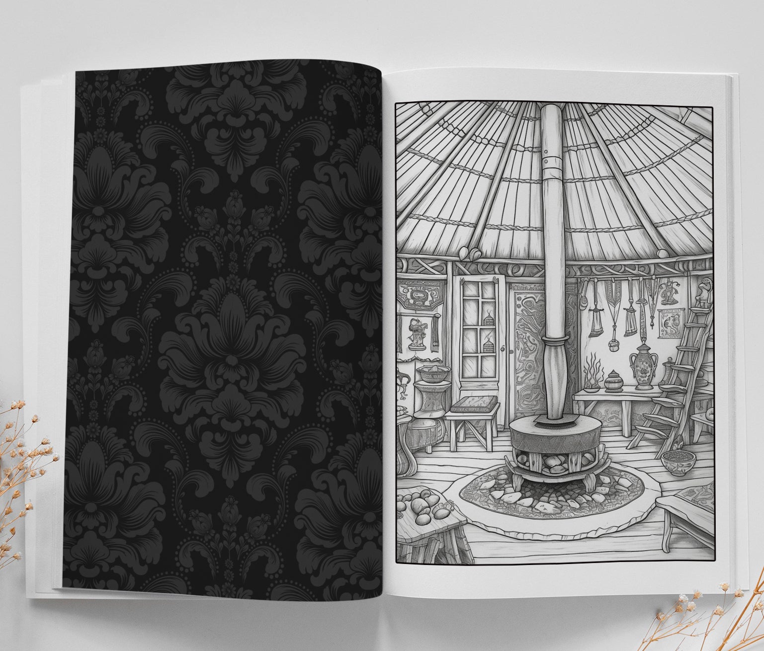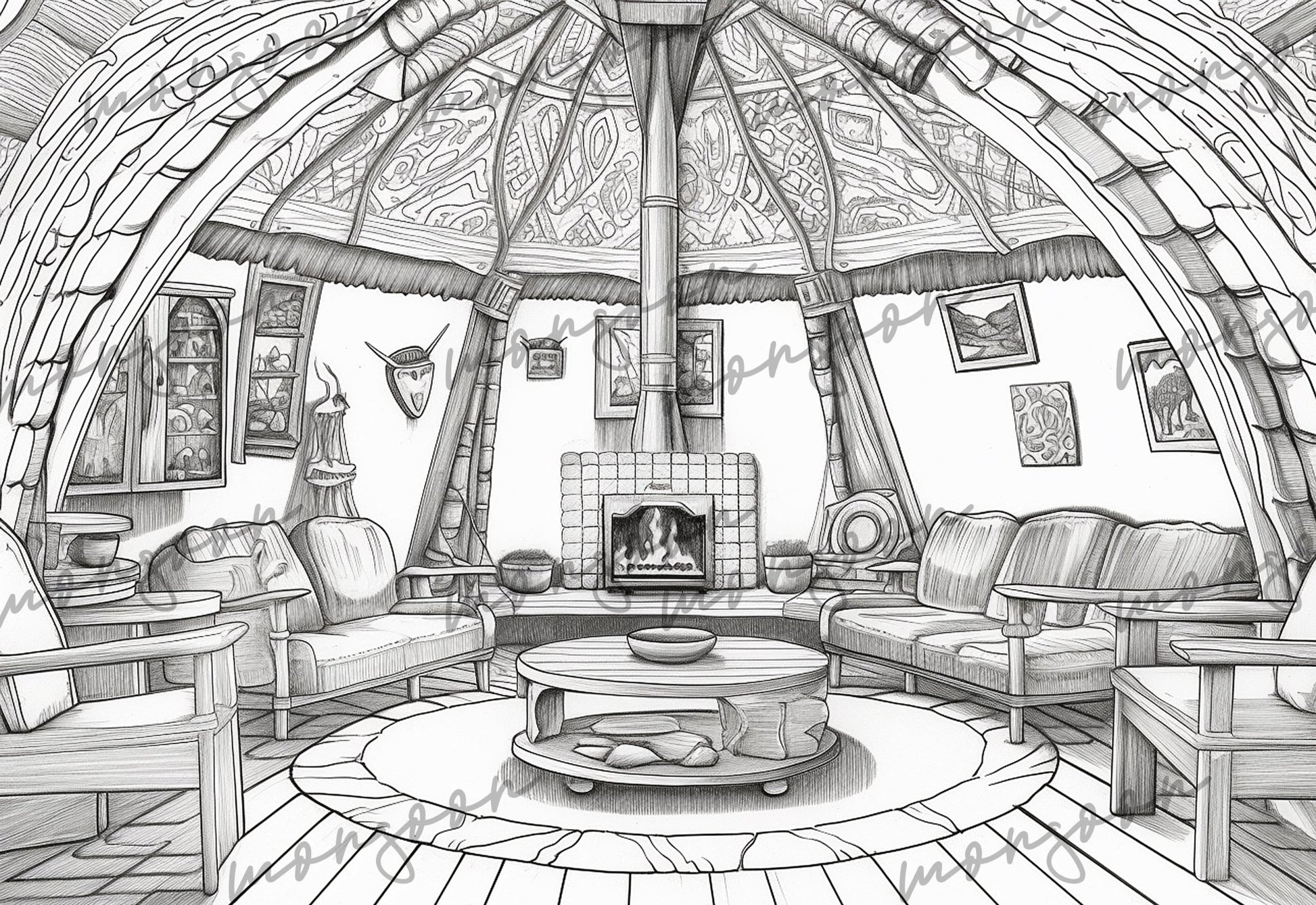 Cozy Yurt Coloring Book Grayscale (Digital)