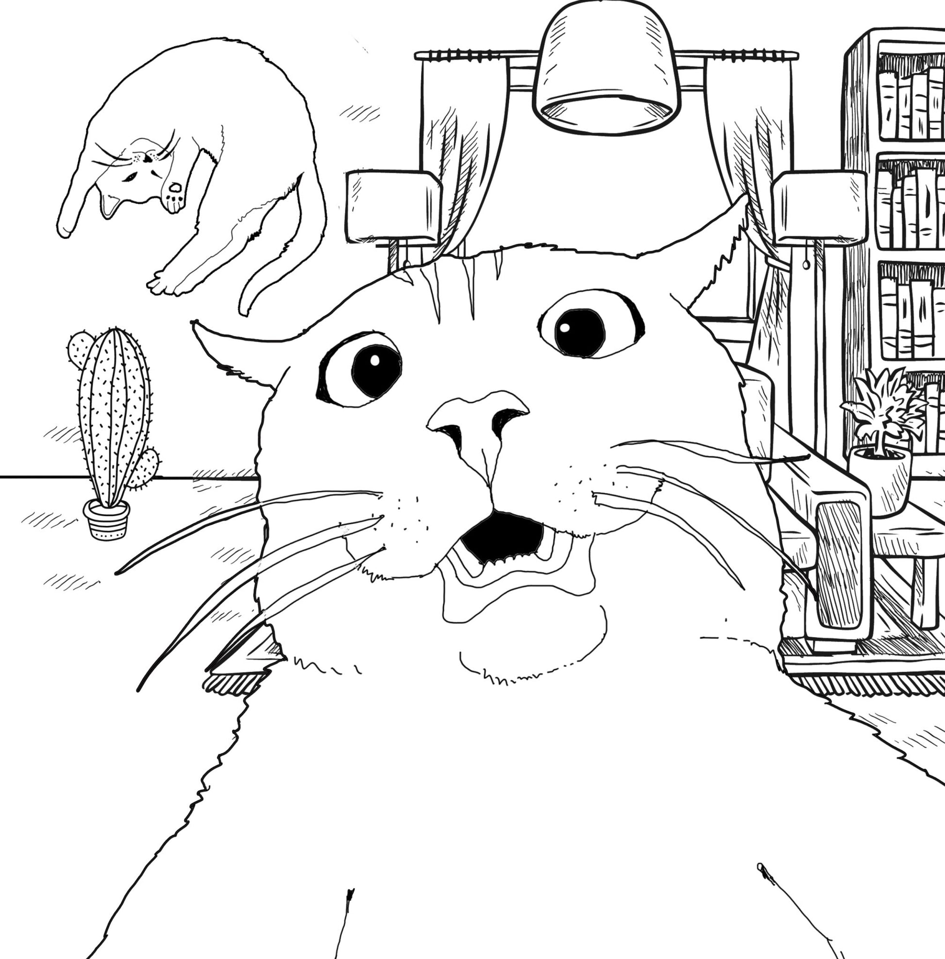 A super funny cat coloring book for adults: confused, angry, funny, crazy and freaky cats in a cozy home.
