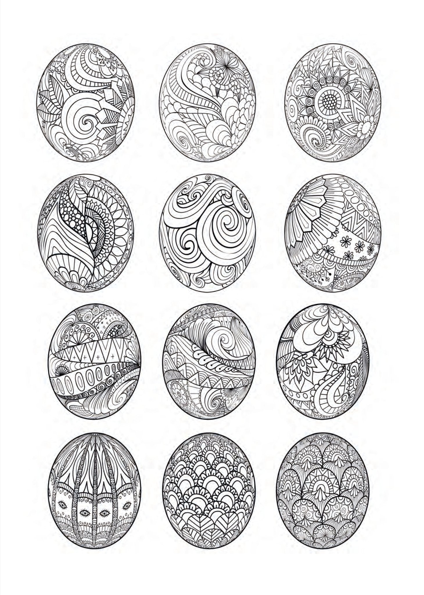The new Easter coloring book has a large selection of different Easter elements with different levels of difficulty and different styles: playful, abstract, real, mandala style, sketched...bunnies, beautifully patterned Easter eggs, daffodils and spring flowers - this book will enchant you!