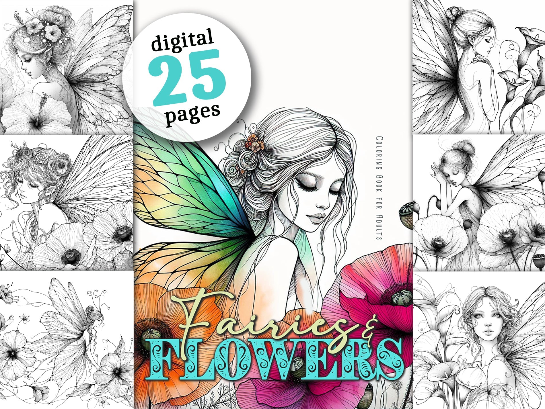 This coloring book combines magical fairies and beautiful flowers.
