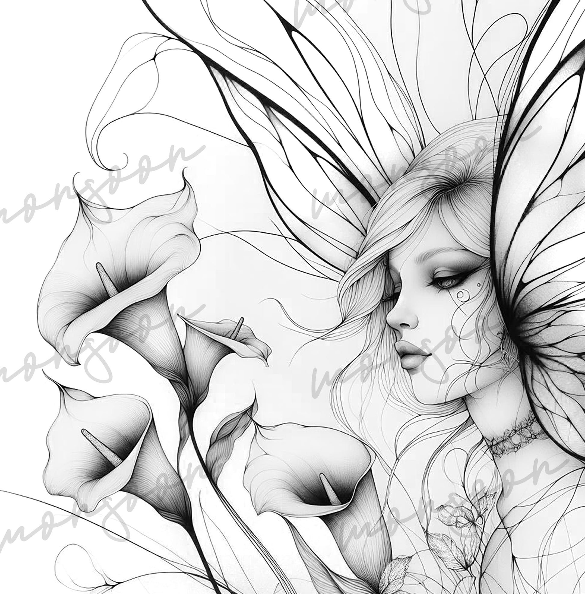 Fairies with fine line art/zentangle