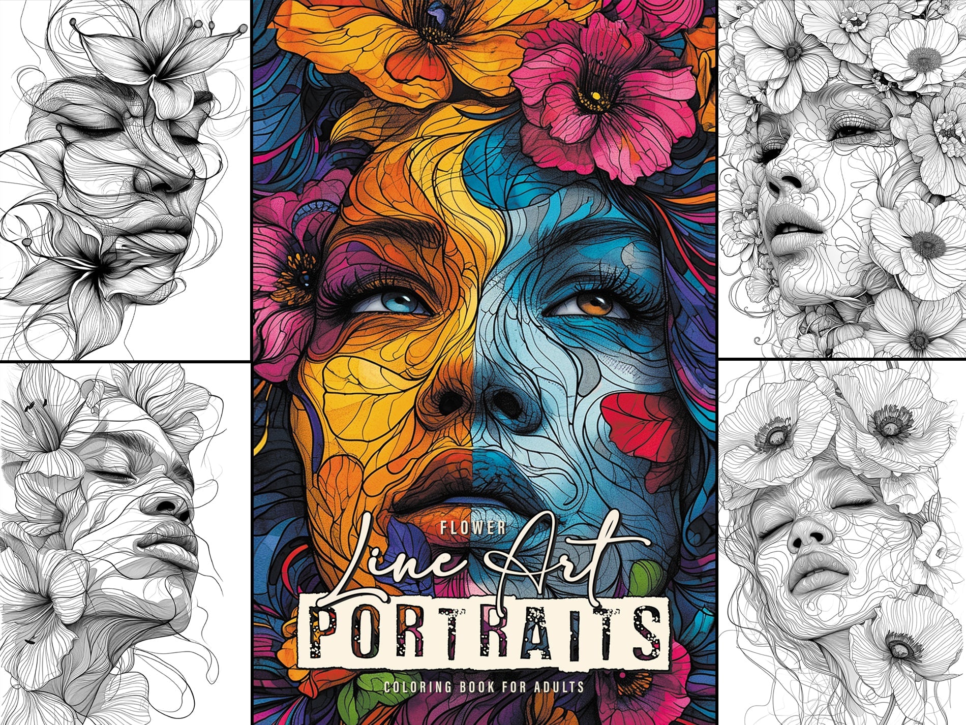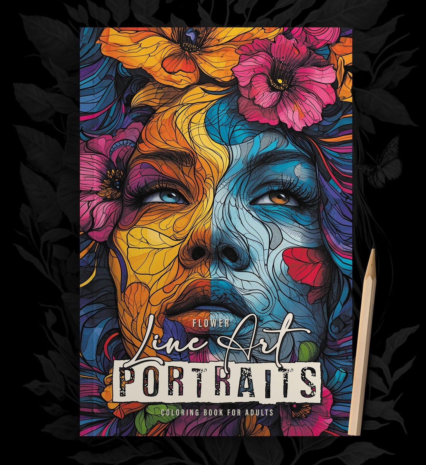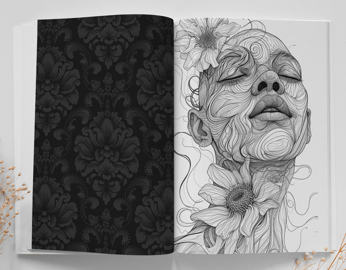A coloring book with line art, creating beautiful portraits and flower patterns.