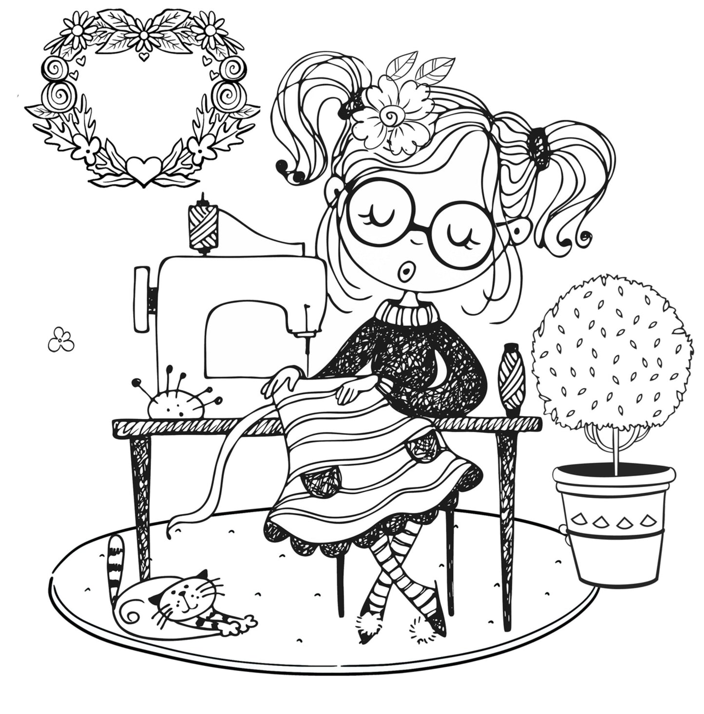 adorable illustrations | reading, baking, sewing, knitting, embroidery