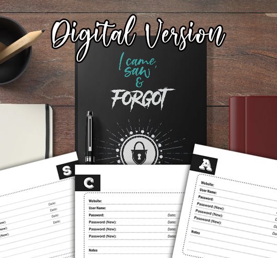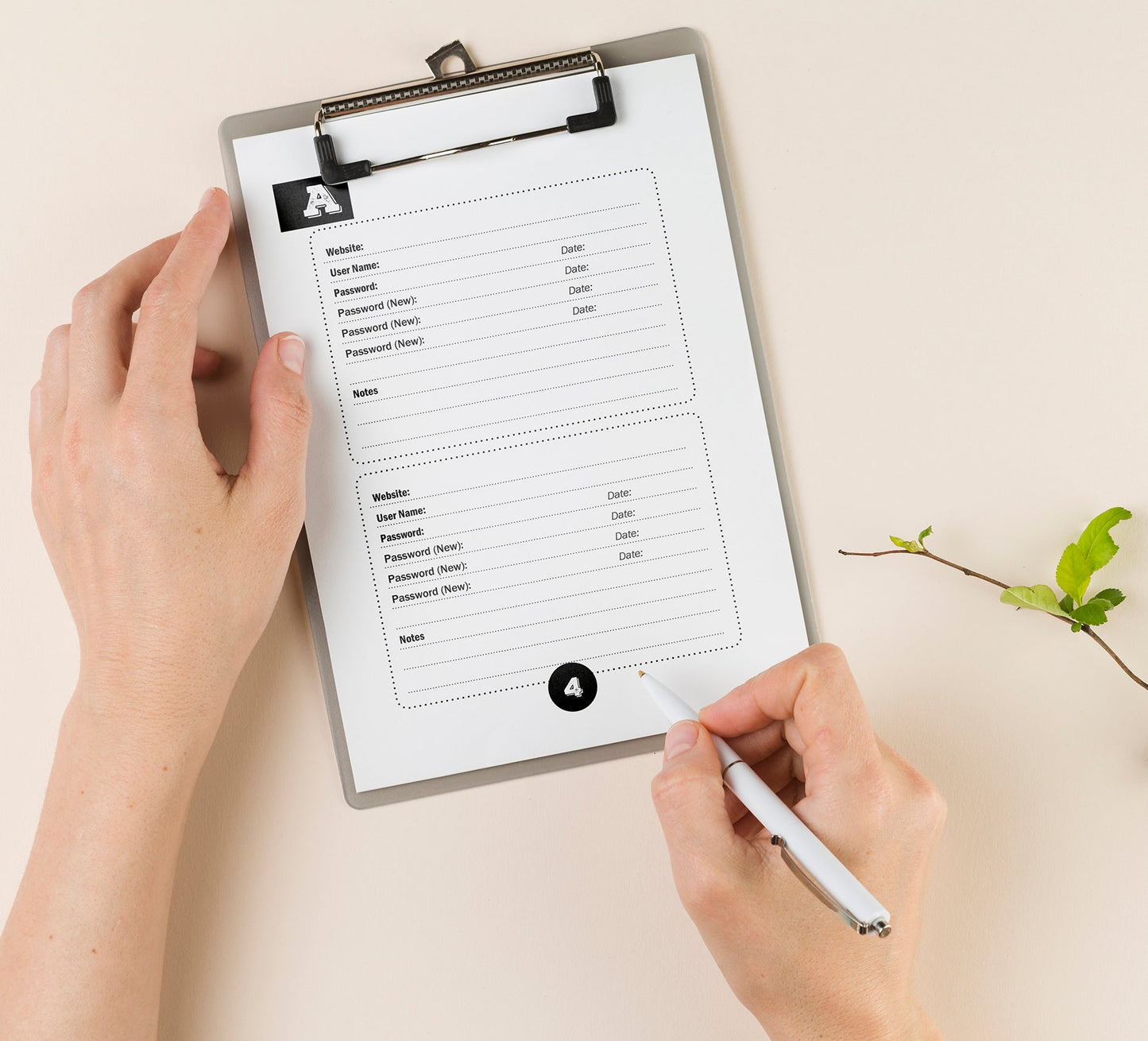 This password pages will help you out, if you know who you are - but forget your passwords! Store the passwords of your favorite websites, apps, devices, and credit cards. Easy to find with tabs and the A-Z system.