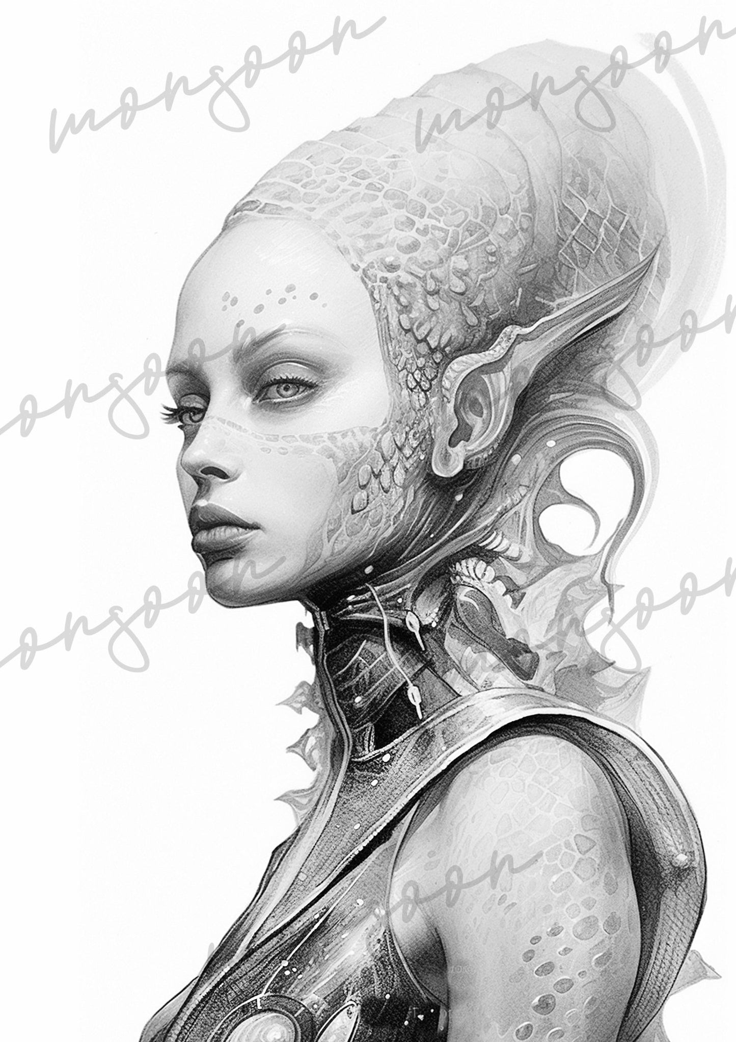 สมุดระบายสี Reptilian Alien Beauties สำหรับผู้ใหญ่