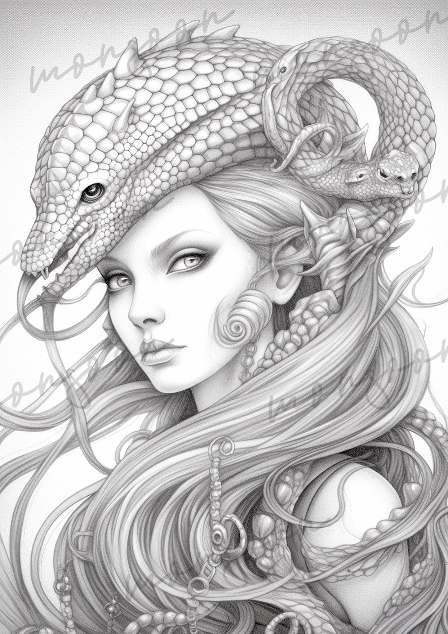 Reptilian Beauties สมุดระบายสีโทนสีเทา (สมุดพิมพ์)