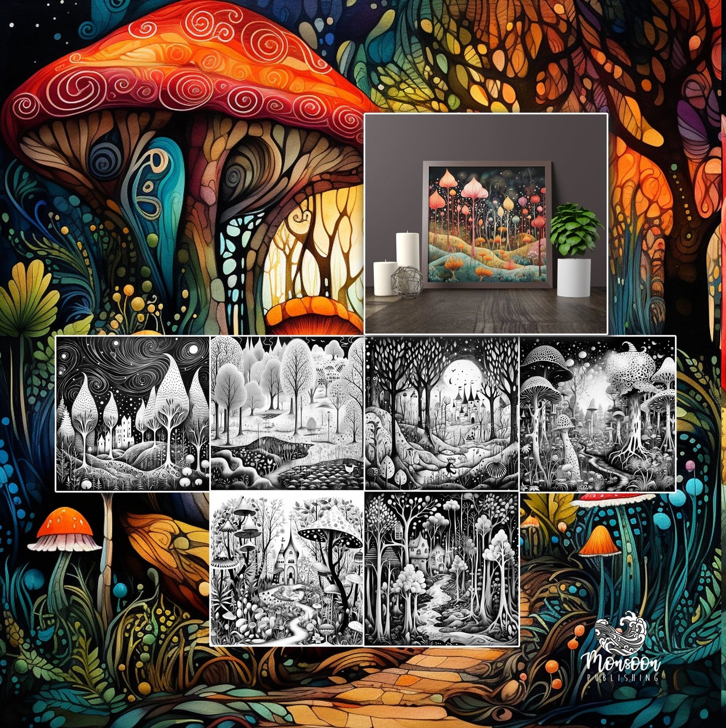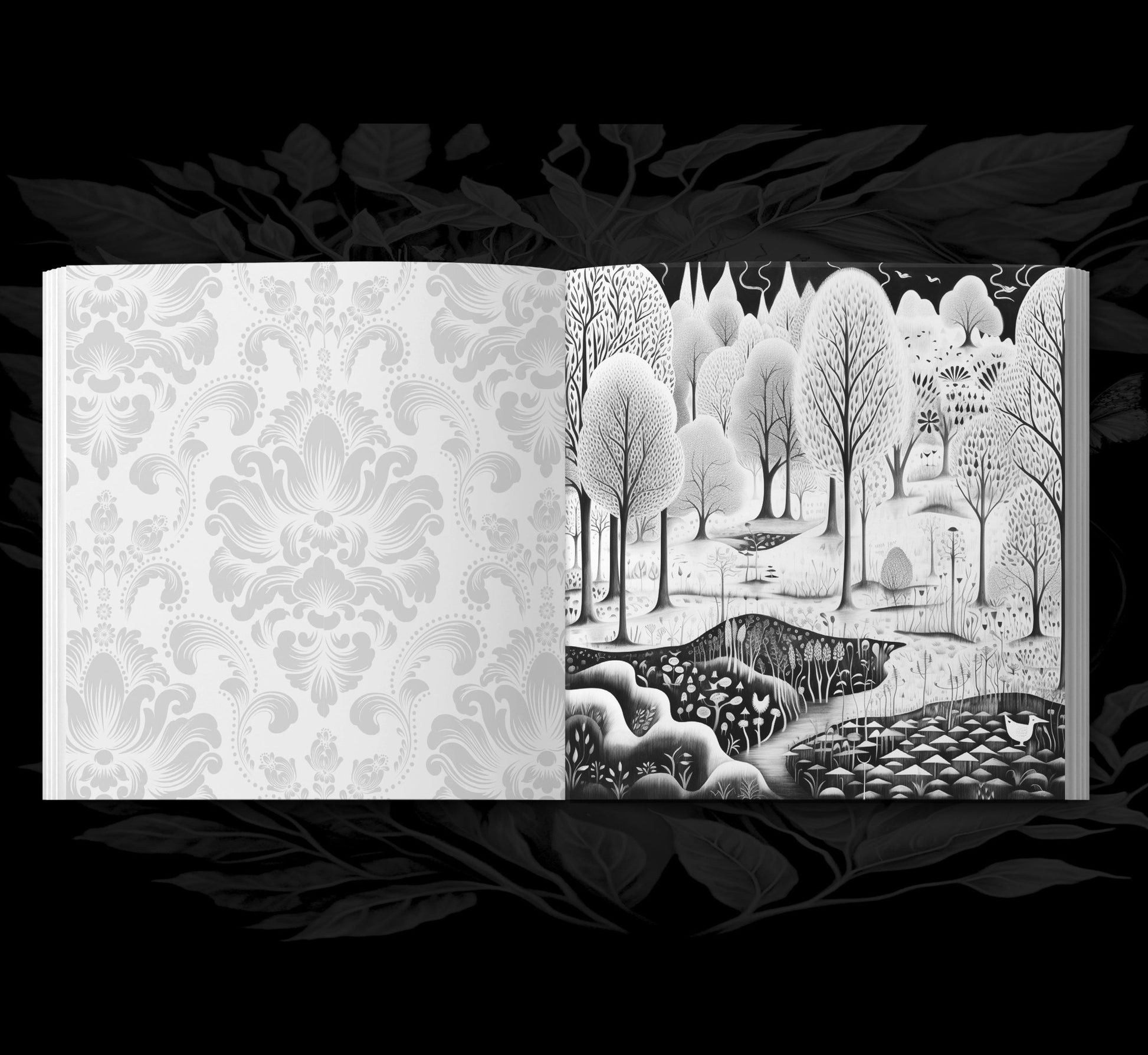 A wonderful art like coloring book full of fantasy forests and landscapes